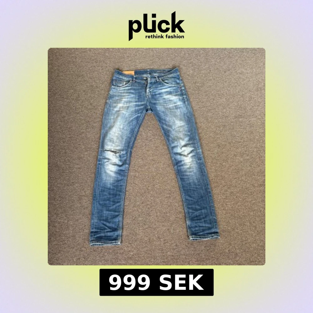 Säljer ett par sjukt feta blå jeansbyxor från Dondup med slitningar vid knäna och klassisk femficksdesign. Jeansen har normal passform och är tillverkade i denim med lätt tvättad look. Perfekta för en avslappnad stil. Moddeleb är 187 runt 80kg. Modellen heter ritchie och sitter samt ser ut som George modellen. Pris ej hugget i sten, och be gärna om fler bilder eller om ni undrar något.