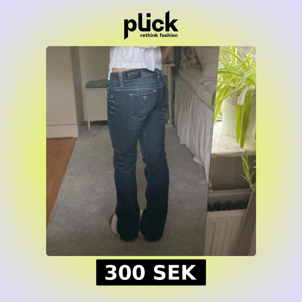 Snygga blå jeansbyxor från Guess med låg midja och bootcut. Kommer tyvärr inte till användning längre. Inga defekter. Passar mig som är 170. Bilderna är lånade från tjejen jag köpte dem av. Fråga om du vill ha flera bilder. Pris kan diskuteras.