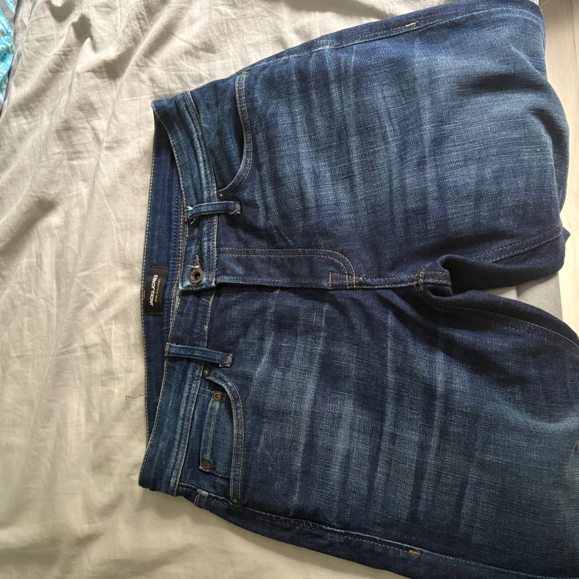 Snygga blå jeansbyxor från Jack & Jones med klassisk femficksdesign och diskreta slitningar. Jeansen har raka ben och normal passform, perfekta för en avslappnad stil. Tillverkade i mjukt denimtyg med tydliga kontrastsömmar och bälteshällor.