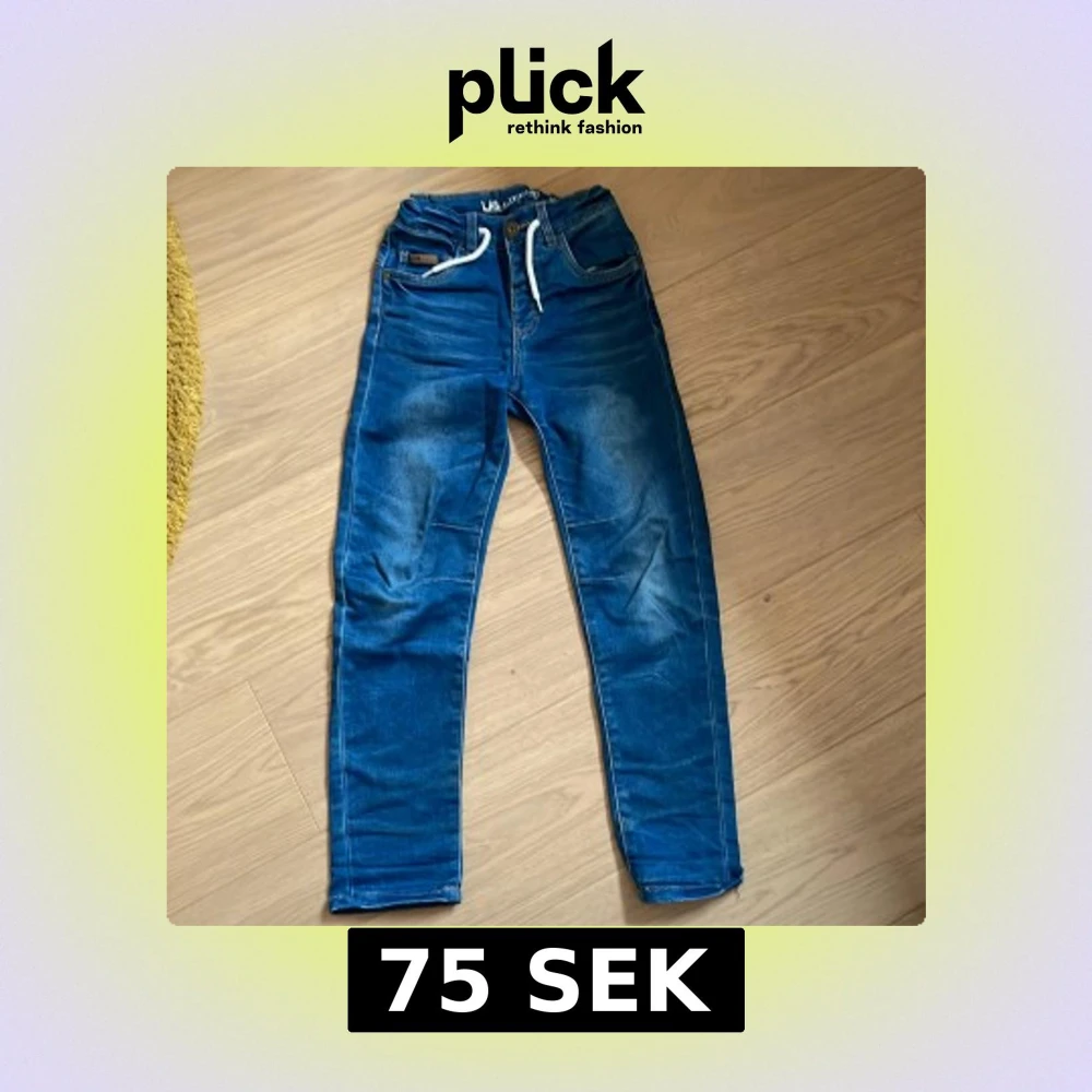 Snygga blå jeansbyxor från LAB Industries med en avslappnad passform. Byxorna har en elastisk midja med snörning och klassiska femficksdetaljer. Perfekta för en casual look. Storlek 134/9-10Y. Priset är inte hugget i sten.
