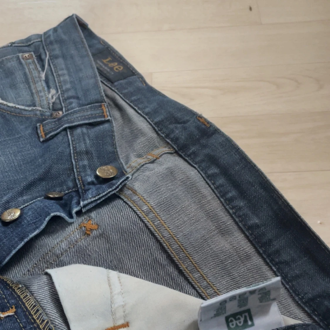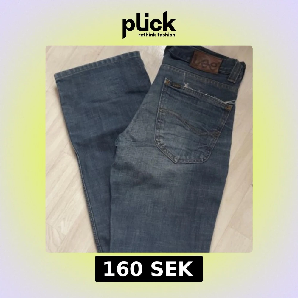Grå/blå low waist jeans från Lee med femficksdesign, utsvängda från knäna och ner, skit snygga, super fint skick men ett litet hål på högra knäet
