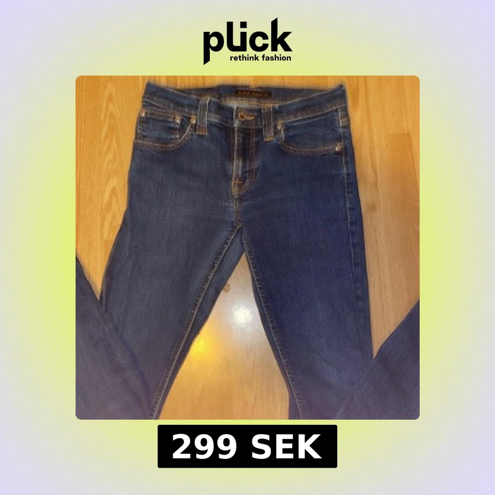 Säljer ett par klassiska blå jeans från Nudie Jeans med raka ben och snygga kontrastsömmar. Byxorna har fem fickor, normal passform och tydlig broderad detalj på bakfickorna. Perfekta för en avslappnad stil.