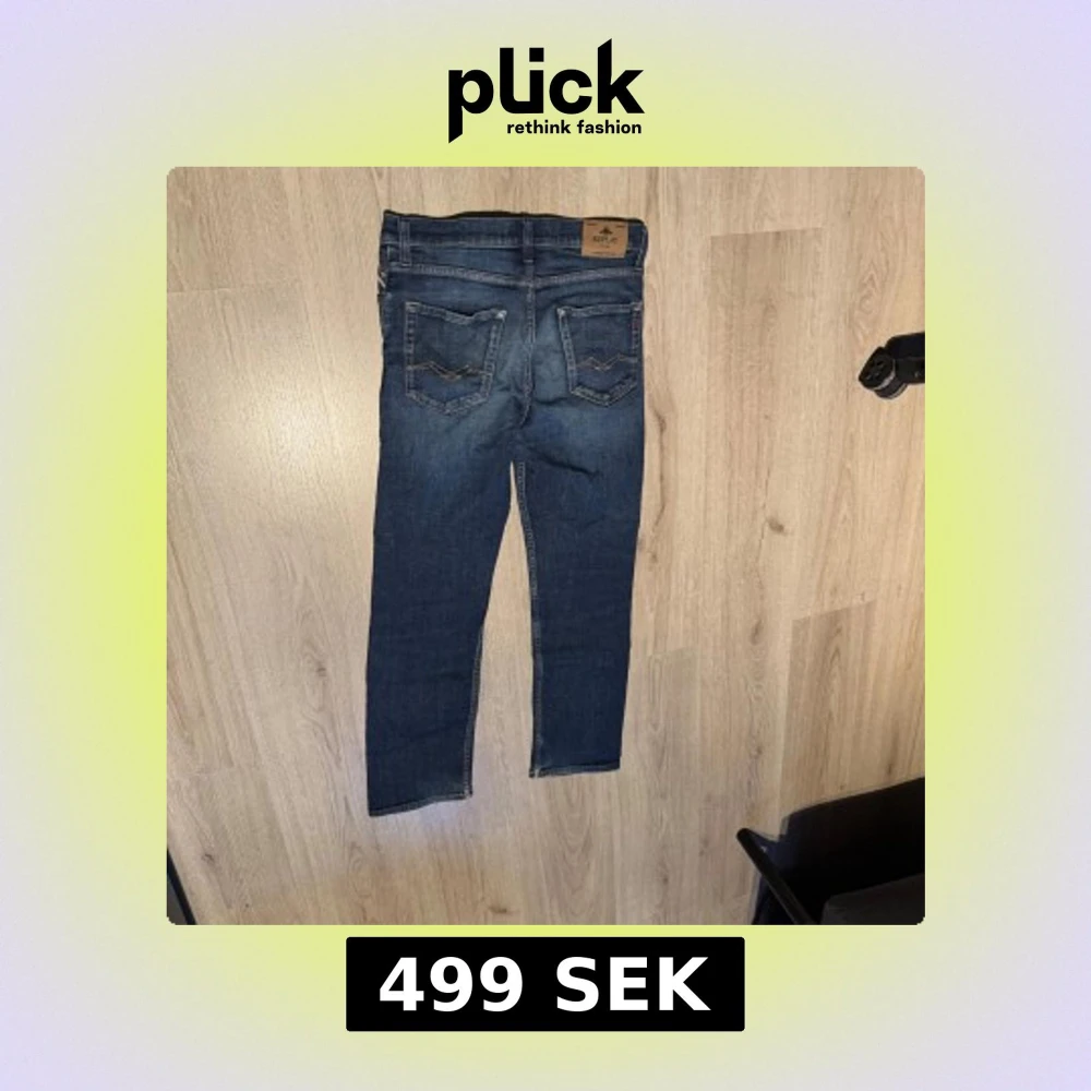 Säljer ett par klassiska blå jeans från Replay med raka ben och snygga bakfickor. Jeansen har normal passform och är tillverkade i slitstarkt denim. Perfekta för dig som gillar tidlös stil och bra kvalitet.