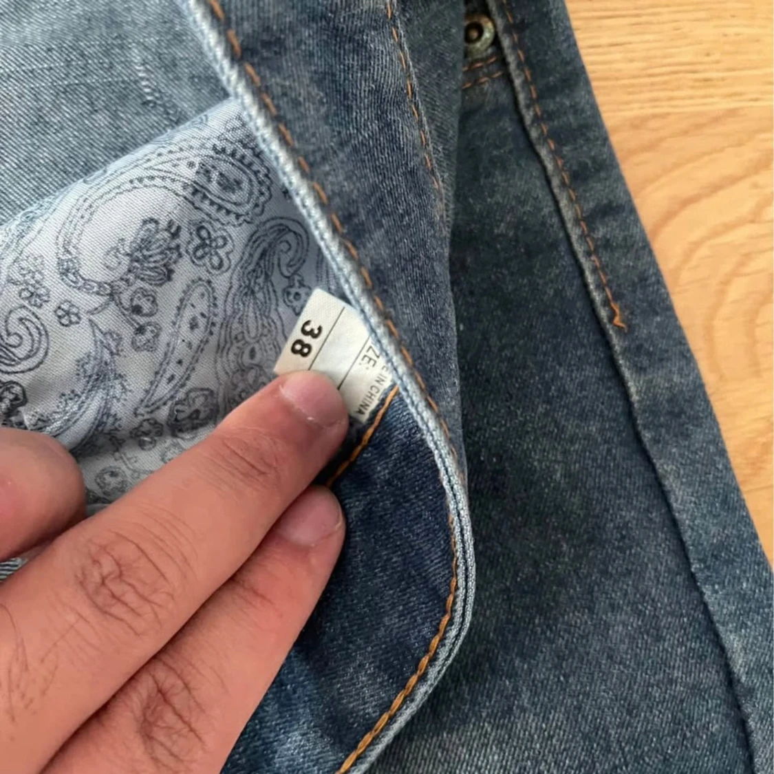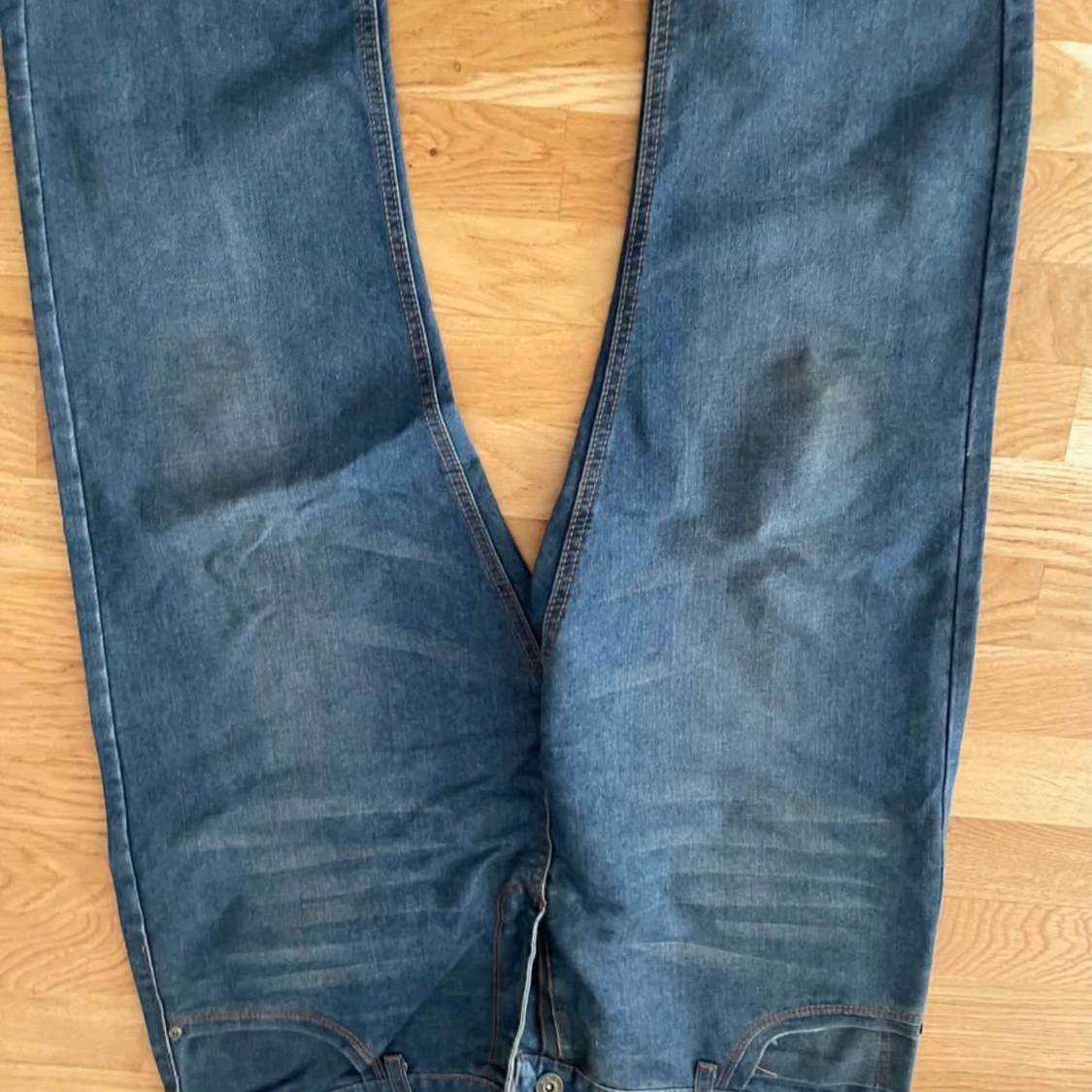 Snygga blå jeansbyxor i klassisk rak modell med kontrastsömmar och femficksdesign. Byxorna har en normal passform och är tillverkade i tåligt denimtyg. Perfekta för dig som gillar en tidlös och enkel stil.