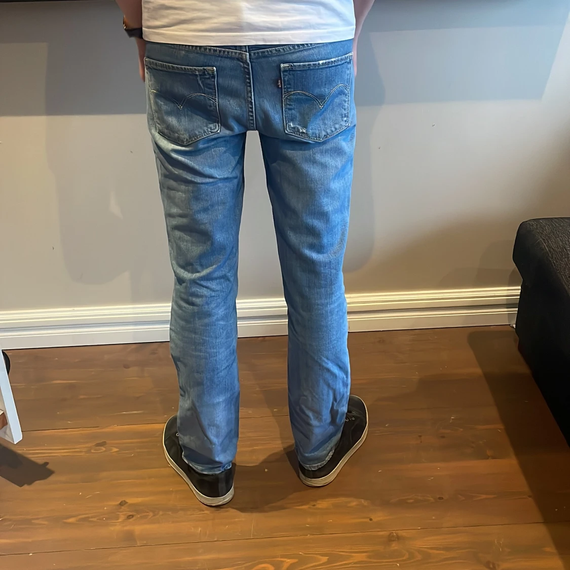 Snygga blå jeansbyxor med en klassisk straight passform. De har en midwaist design och är perfekta för en avslappnad stil. Byxorna har en dragkedja och knappar framtill samt fem fickor.