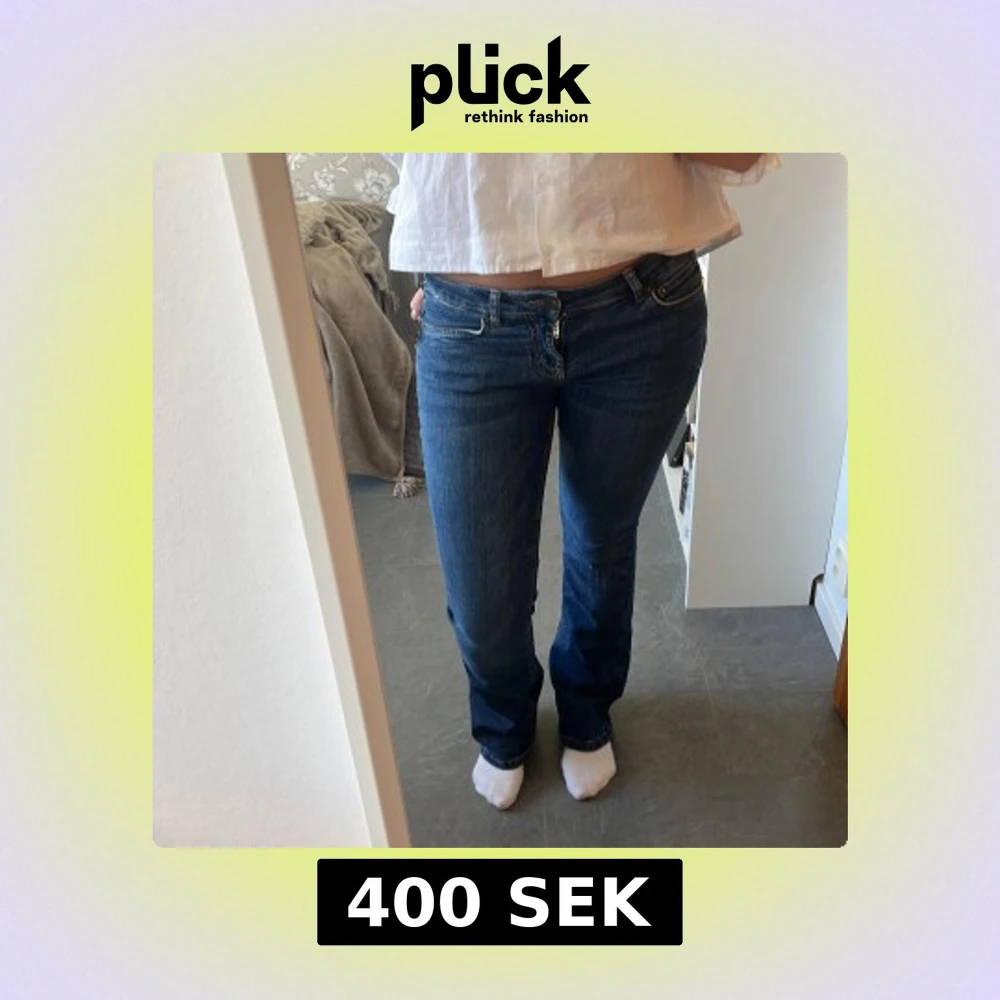 Snygga blå jeansbyxor med en klassisk design. De har en normal passform och är perfekta för en avslappnad stil. Byxorna har en dragkedja och knappar framtill.