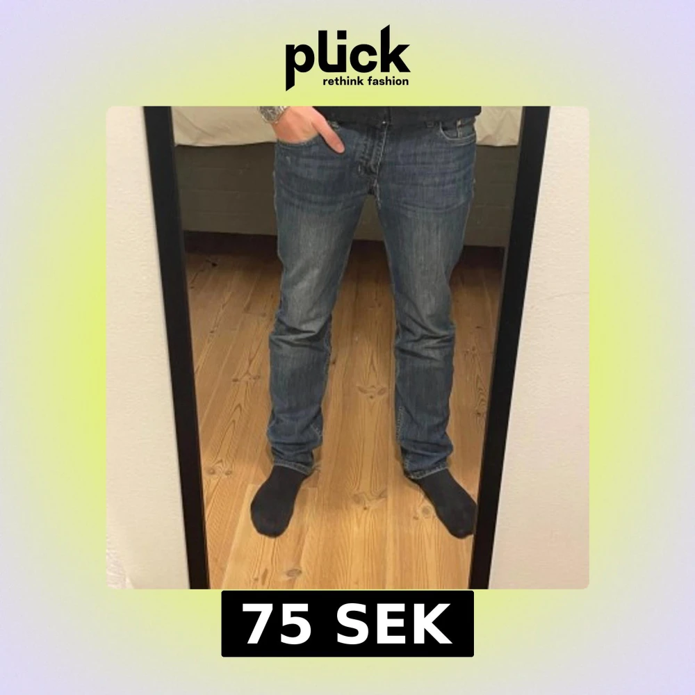 Riktigt schyssta jeans, inte för baggy och inte för slim. Hade gärna haft kvar dom men dom är tyvärr lite korta. Passar om man är mellan 160-170. Inga defekter utom ett litet hål på framsidan, men inget man tänker på. Tveka inte att skriva, kan skicka fler bilder om du skulle vilja.
