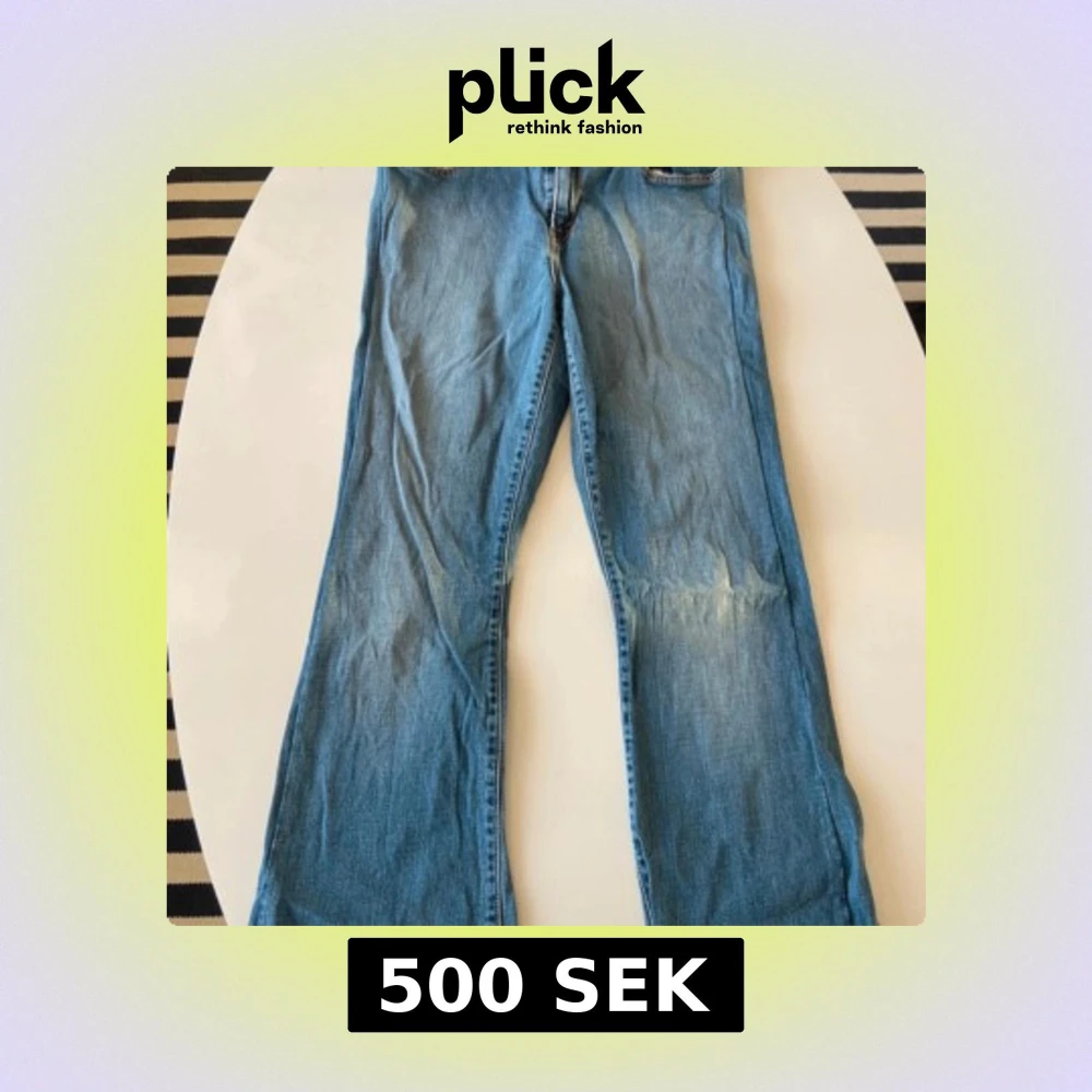 Snygga blå lågmidjade bootcut jeans från Levi's med klassisk femficksdesign och knappgylf. Perfekta för en avslappnad stil. Märkesdetaljer syns på bakfickan och etiketten. Lånade bilder