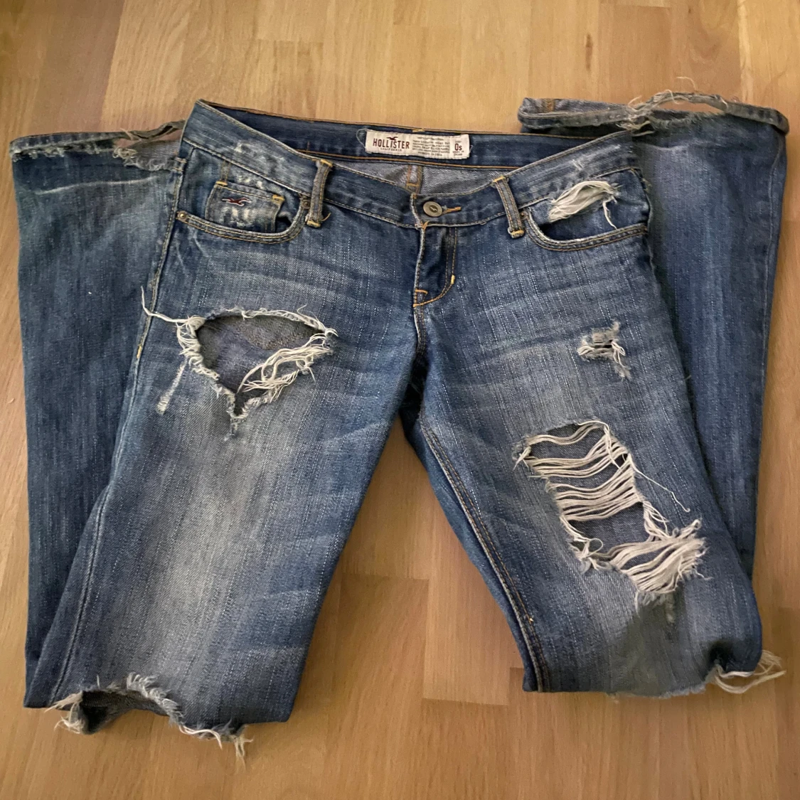 Säljer dessa superfina jeans från Hollister med slitningar då de inte kommer till användning. De är super Lågmidjade och säljs inte längre. 💞 De är storlek 0s och jag har storlek 25 i jeans och de passar mig perfekt. Kom privat för fler bilder eller om du har frågor 💕