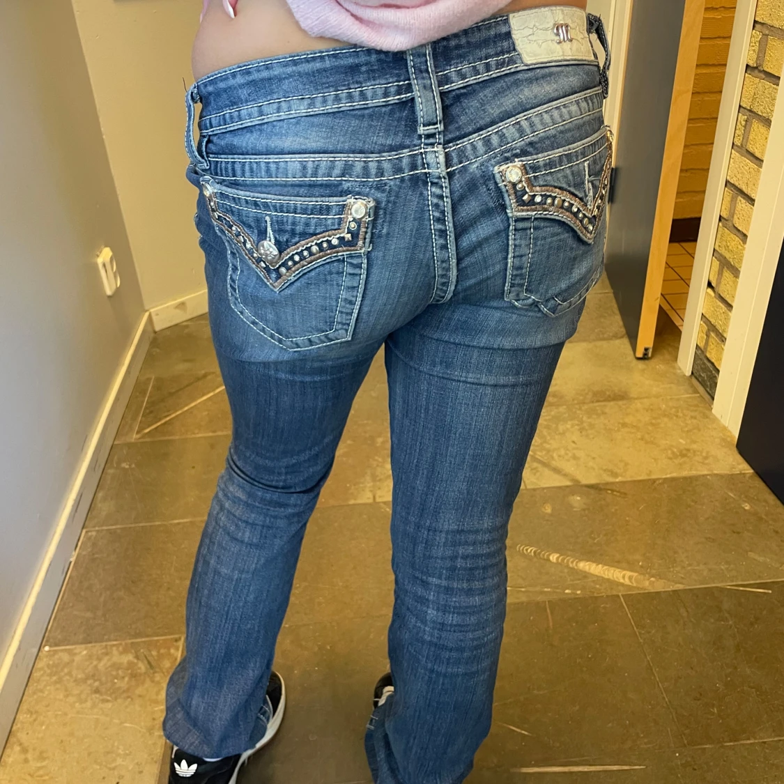 Säljer mina miss me jeans som är ett bra skick lite slitna i botten på jeansen men det syns knappast och har ett pyttelitet hål i innerlåret men det går lätt att sy. Skicka om ni vill se mer detaljerat🫶🏼det är stl 26 och sitter som en S