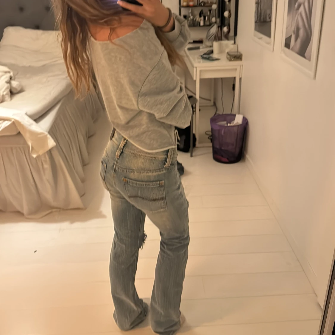 Säljer ett par ljusblå jeans från Lee. Jeansen har låg midja och klassisk femficksdesign . W26 L31. Skriv vid frågor❣️