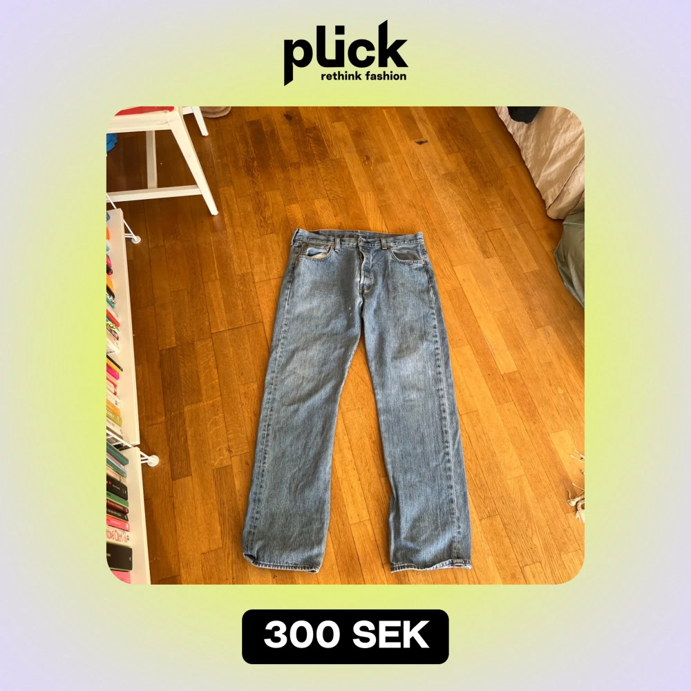 Säljer ett par klassiska Levi's jeans i blå denim. De har en straight passform och är i mycket bra skick. Perfekta för både vardag och fest! 🕺