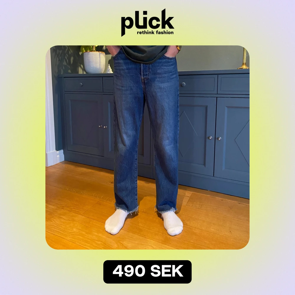 Snygga blå Levi's Ribcage Straight Ankle jeans med hög midja och rak passform. Perfekta för en avslappnad stil med en klassisk look. De har en traditionell femficksdesign och är tillverkade i slitstarkt denim.