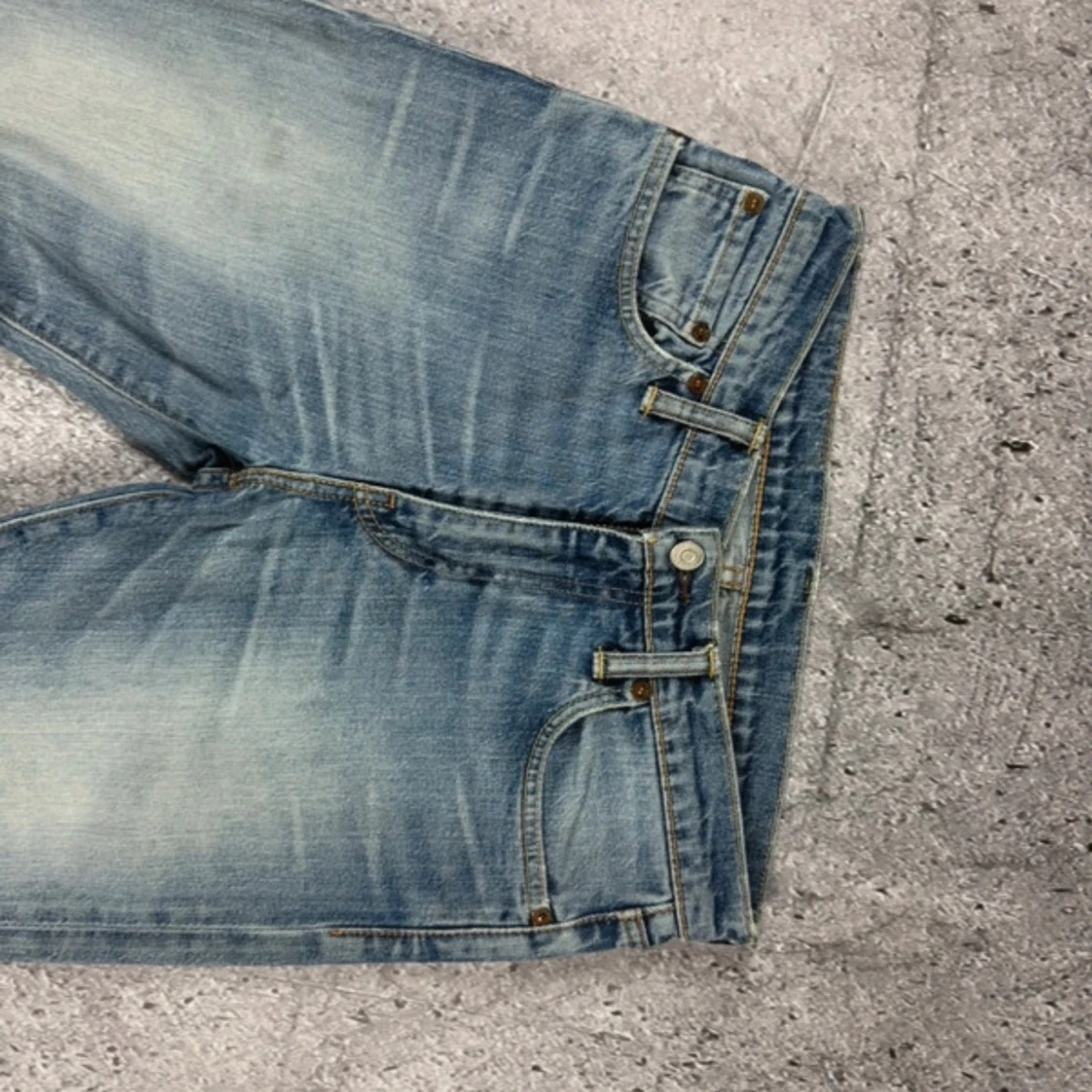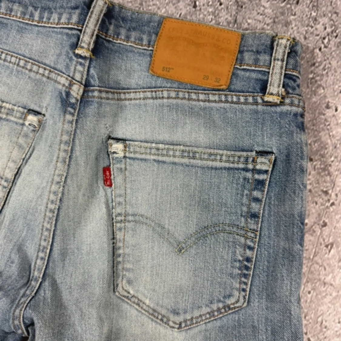 Säljer ett par klassiska ljusblå Levis 501 jeans med raka ben och normal passform. Jeansen har fem fickor, knappgylf och den ikoniska Levis-lappen bak i midjan. Perfekta för en avslappnad stil. W-29