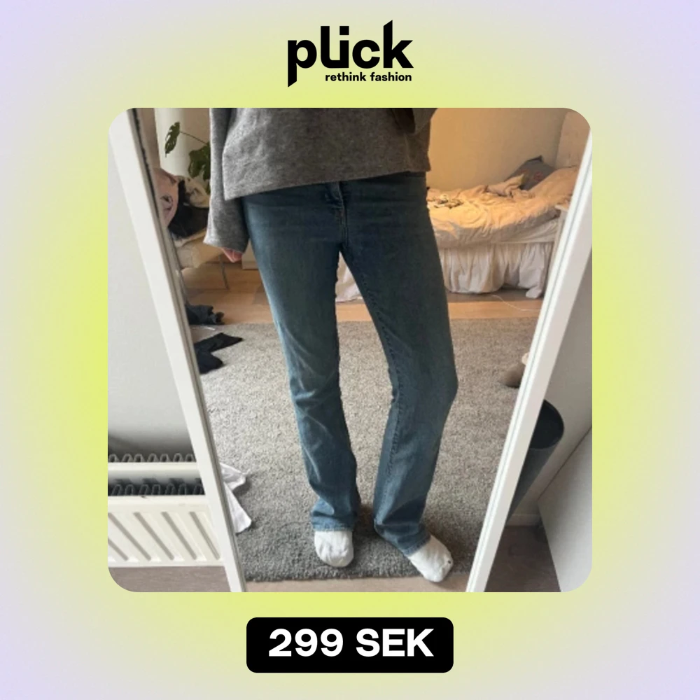 Säljer ett par skitsnygga Levi’s bootcut jeans! De är i storlek 26/32 (sparsamt använda). Midjemåttet är 37 cm rakt över och innerbenslängden är 79! 💗💗