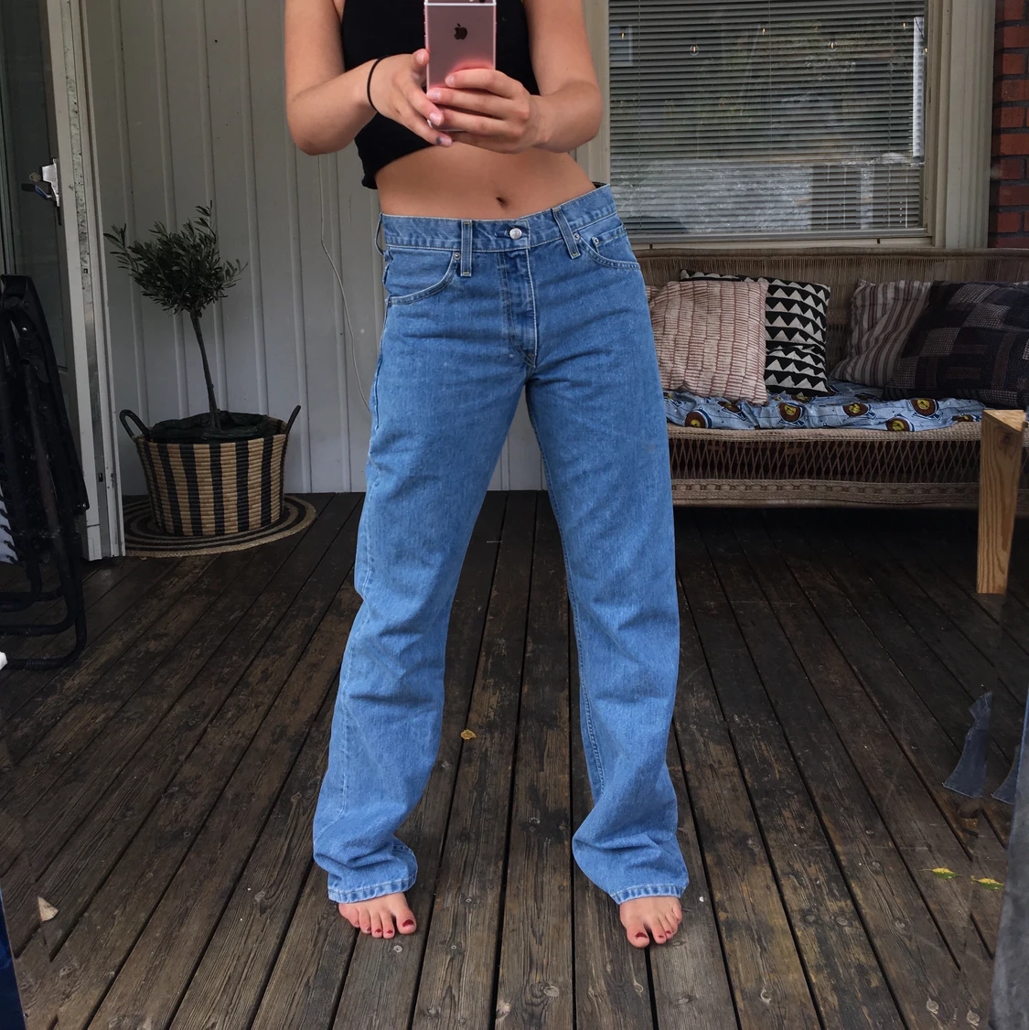 Säljer dessa näst intill oanvända lågmidjade Levis jeansen. Passar cirka w25💓 (Jag är cirka 170cm) Innerbenslängden är 84cm💕 midjemåttet är cirka 82cm (men de är lågmidjat)
