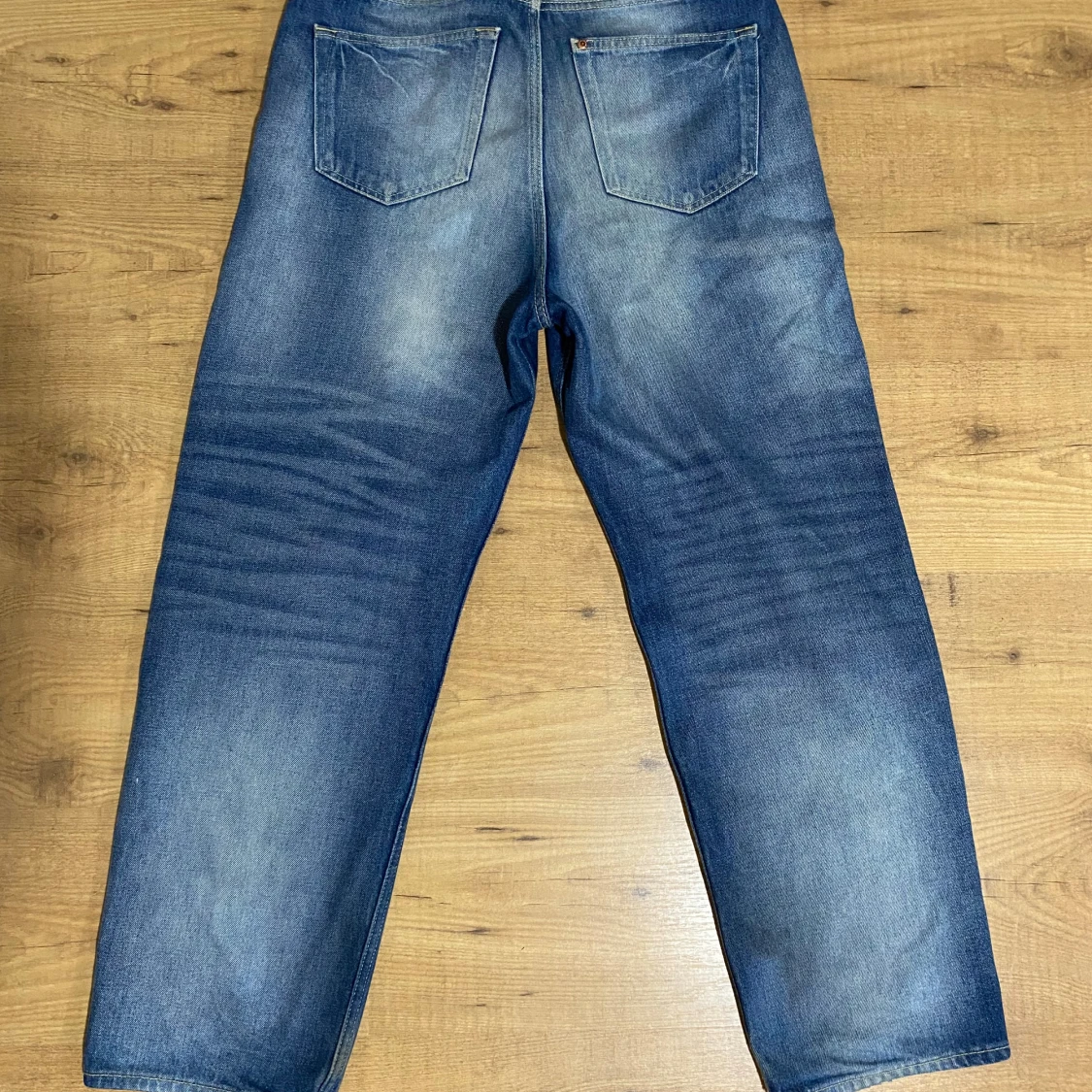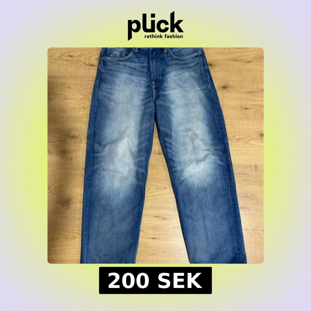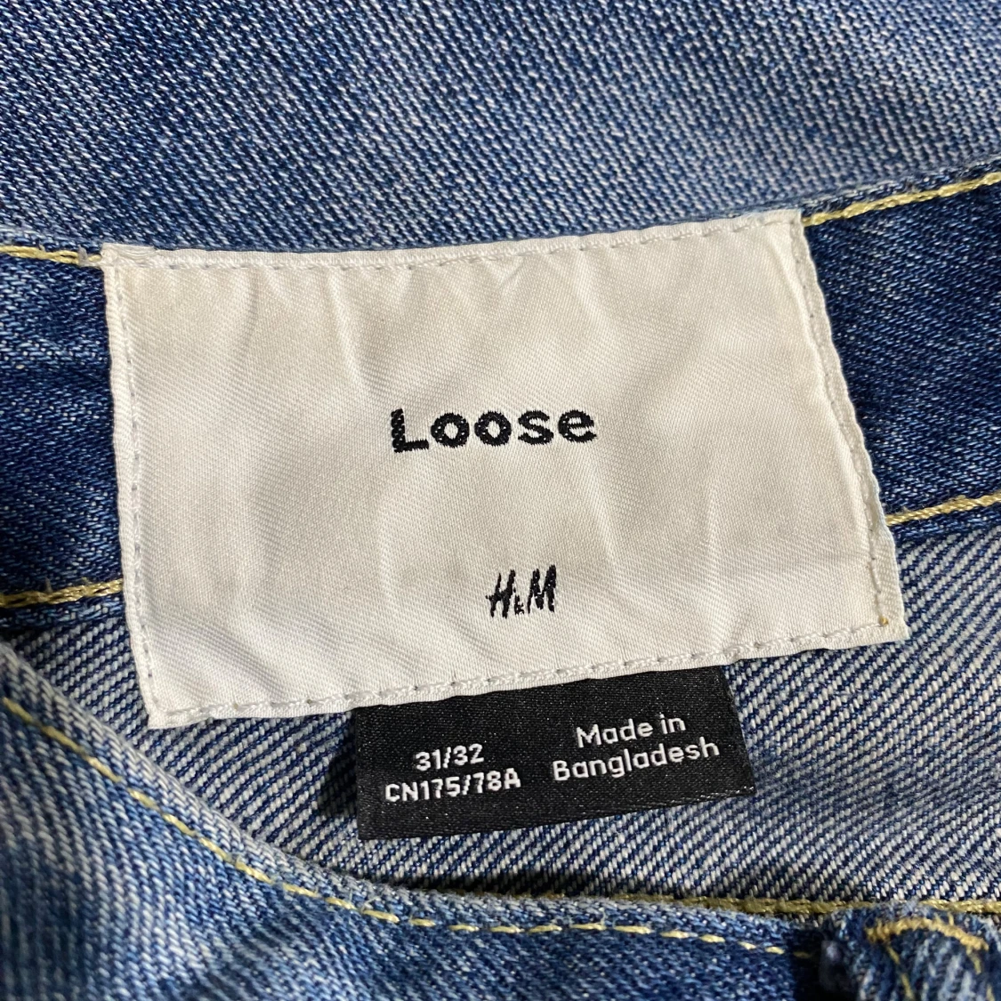 Säljer ett par blå loose fit jeans från H&M i klassisk denim med snygg tvätt och raka ben. Jeansen har fem fickor och normal midja, perfekt för en avslappnad stil. Storlek 31/32.