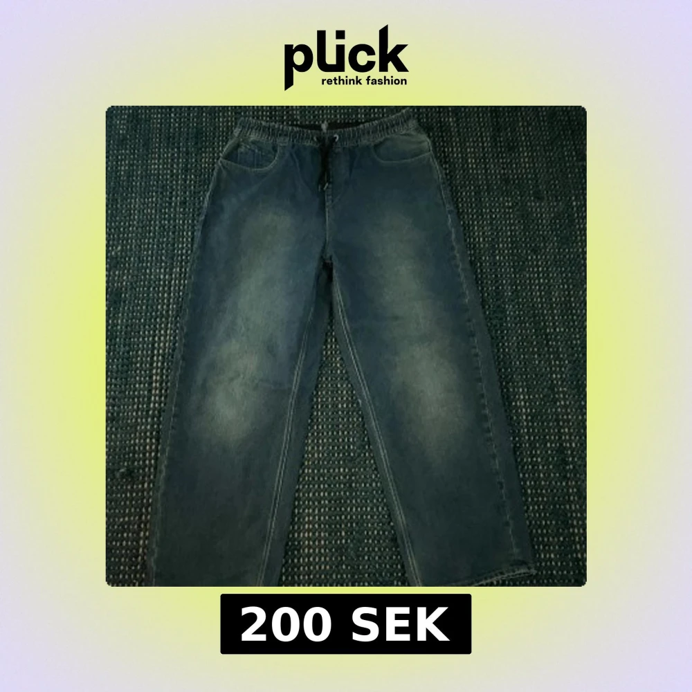 Säljer ett par blå jeans från Volcom med elastisk midja och snörning. Byxorna har raka ben, två fickor fram och två bakfickor. Jeansen har en avslappnad loose passform och är tillverkade i klassiskt denimtyg. Volcom-logga syns på bakfickan och vid benslutet.