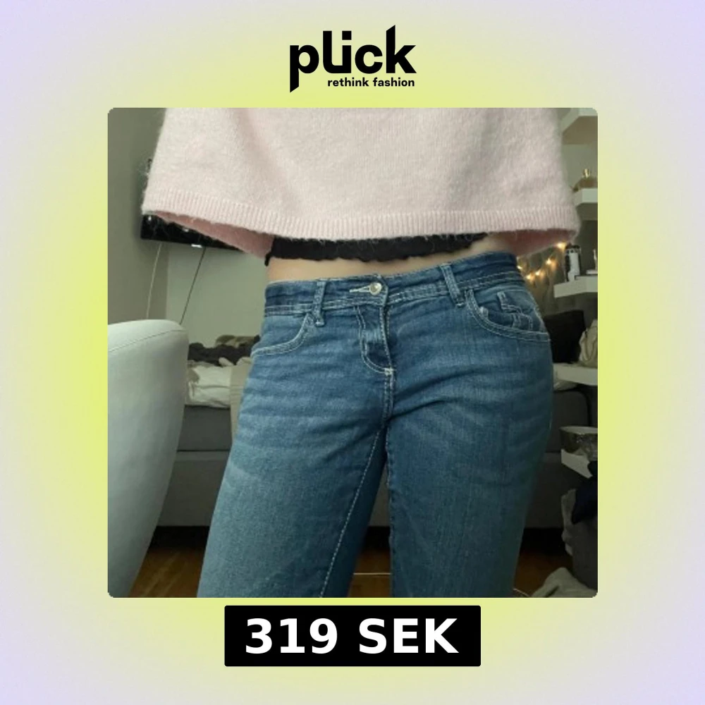 Säljer ett par blåa low waist bootcut jeans från Gina Tricot, då dem ej kommer till användning tyvärr. Midjemått: 37cm