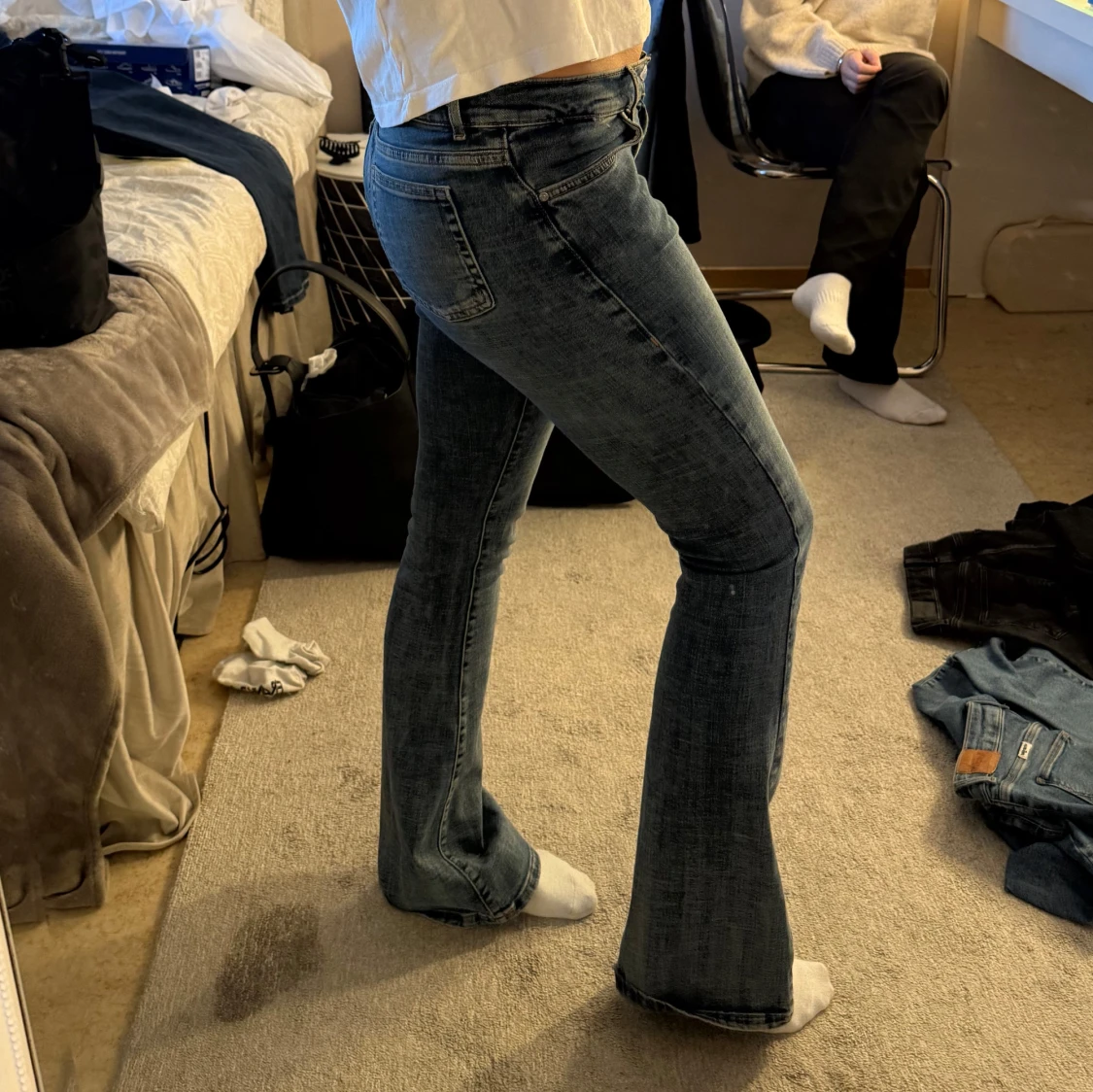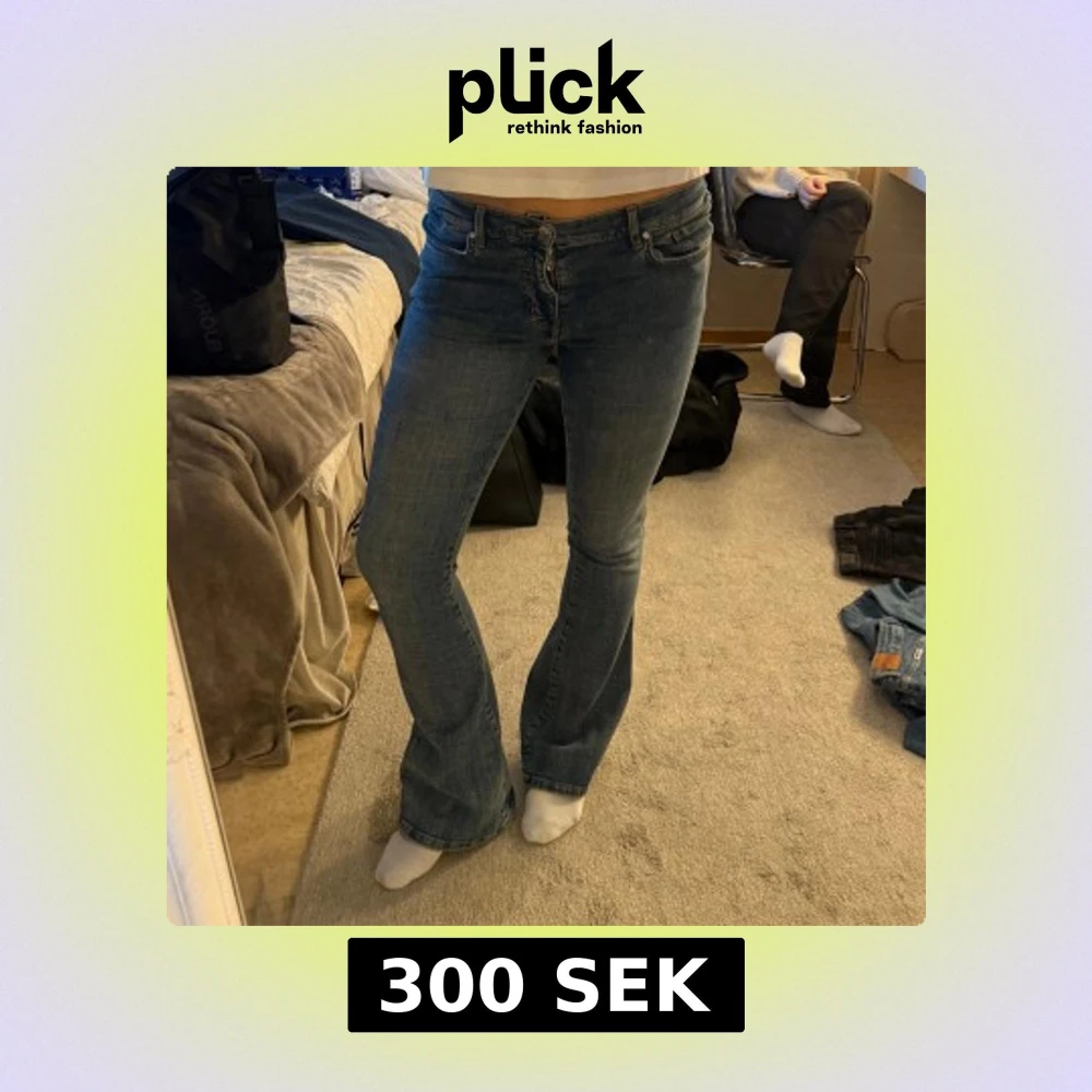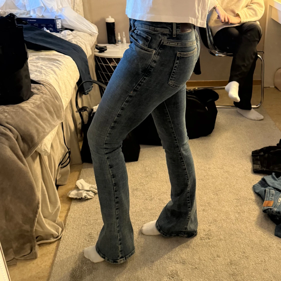 Snygga blå bootcut jeans med låg midja. Storlek 27/32, stretchiga och jättesköna och näst intill oanvända