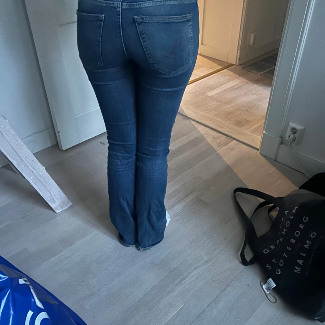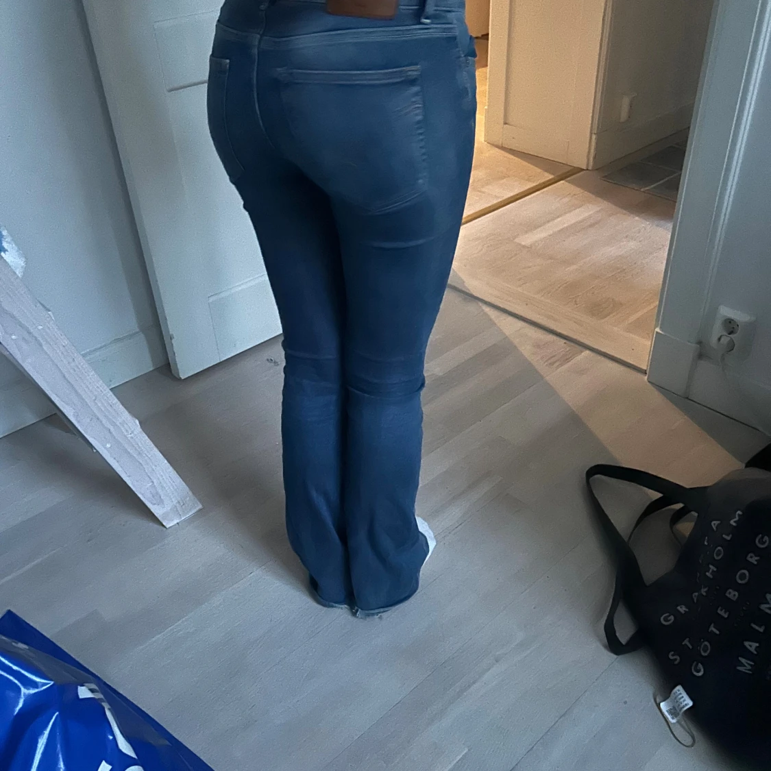 Säljer ett par klassiska blå jeans med bootcut passform. Jeansen har låg midja.