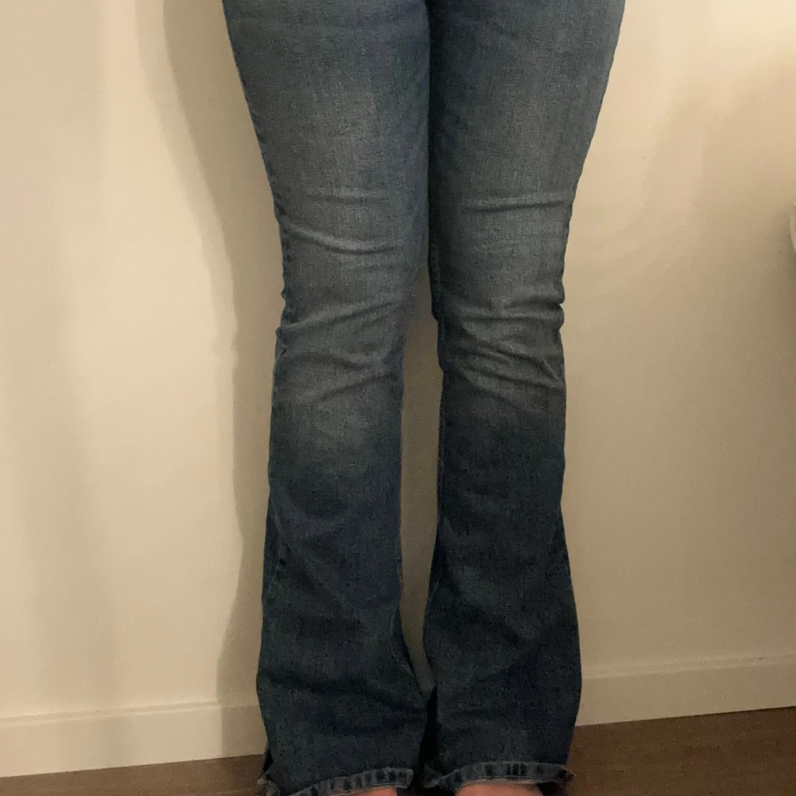 Säljer mina blåa Low waist jeans från Zara. De är använda fåtal gånger då de är för långa på mig. Byxorna är i strl M och är jätte fina nu inför hösten🍂💕 Pris går att diskutera!
