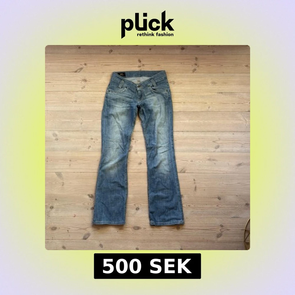 Snygga blå jeans från Lee i modellen Leola med klassisk bootcut och normal passform. Midjan är cirka 37 cm och från innerbenet ner är jeansen 78 cm. W29 och L31. Har ingen bild på för dom passar inte mig. Tillverkade i bomull med dragkedja och knapp framtill.