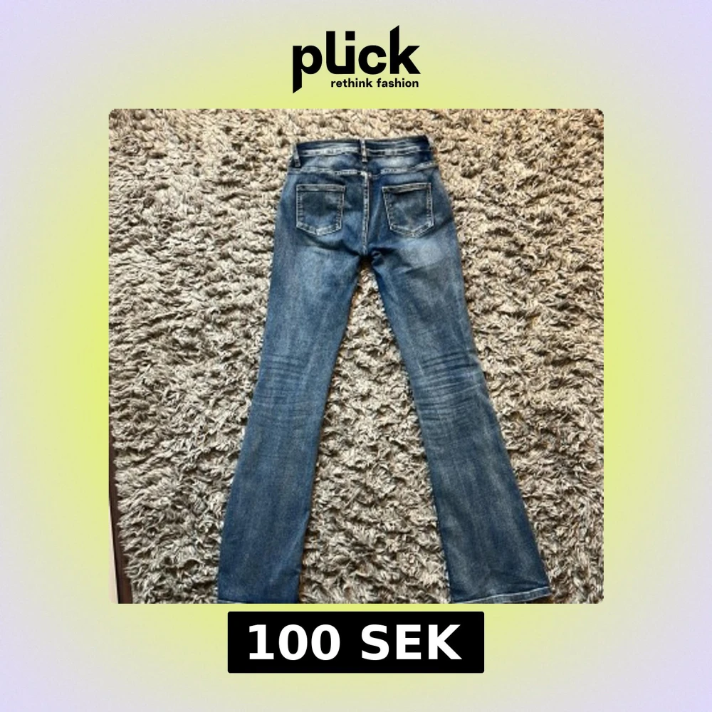 Snygga blå jeans med bootcut passform och klassisk femficksdesign. Jeansen har en något tvättad look och en trasig hällas bak i midjan. Perfekta för dig som gillar en avslappnad och trendig stil. Finns inga hål men den där grejen gick av lite