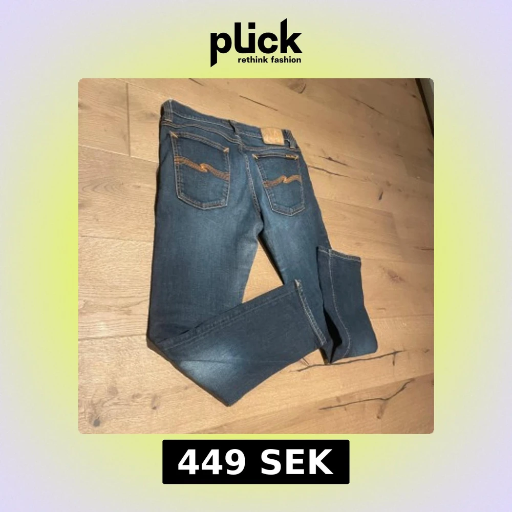 Snygga blå jeans från Nudie Jeans i storlek 32/32. Klassisk femficksmodell med orange kontrastsömmar och Nudie Jeans logga på bakfickan. Jeansen har en rak passform och är tillverkade i slitstarkt denimtyg. Perfekt för dig som gillar stilrena och tidlösa jeans.