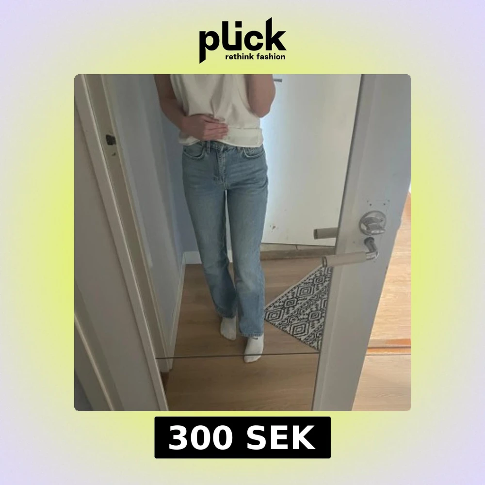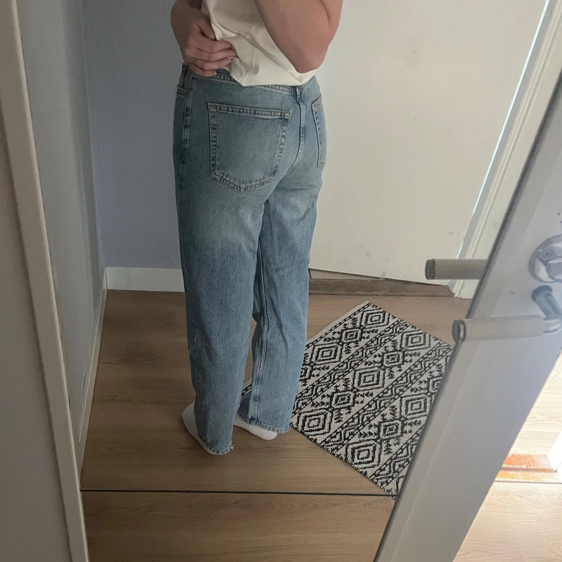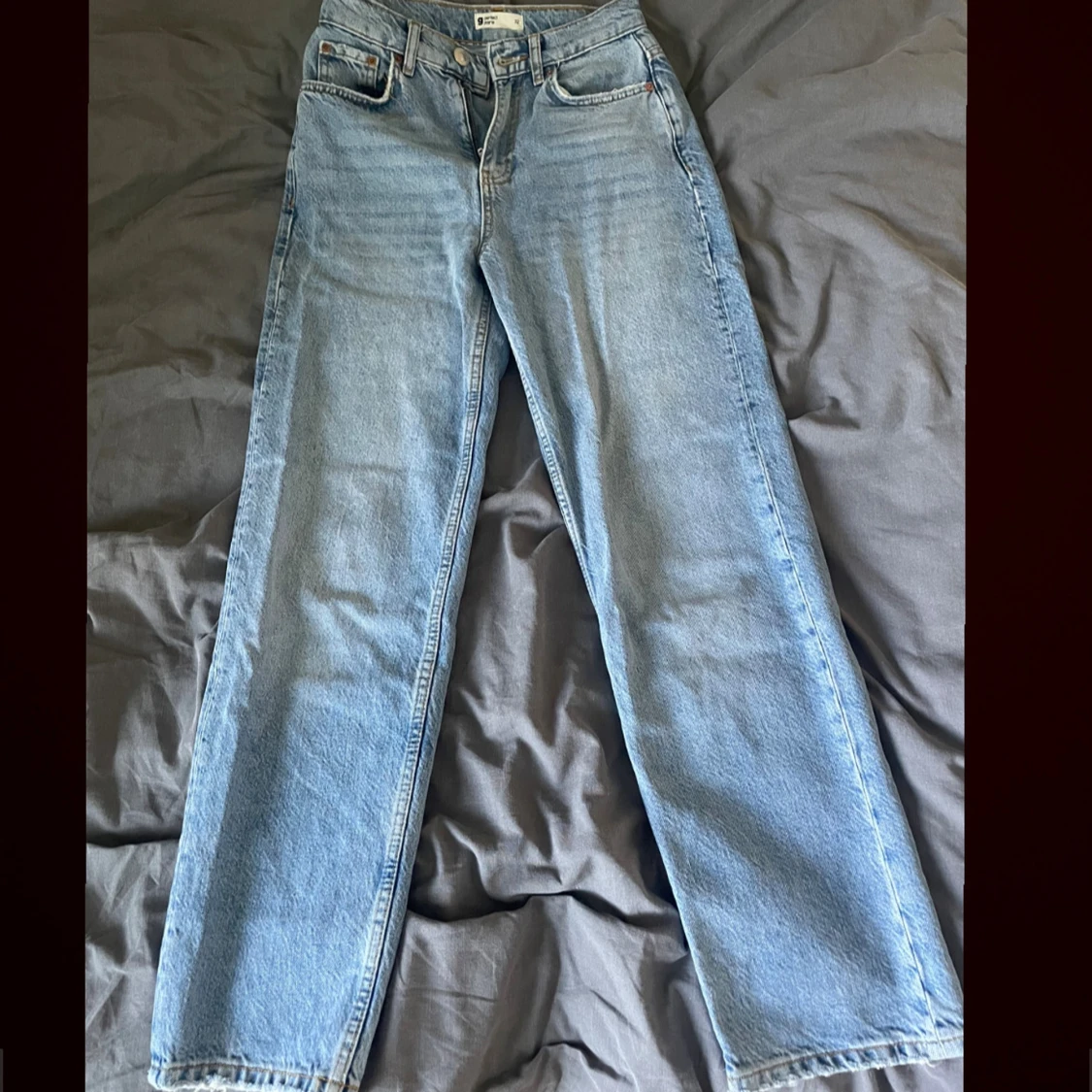 Säljer ett par klassiska blå jeans från Gina tricot i rak modell. De har hög midja och en straight fit som ger en avslappnad men snygg look. Bara att höra av sig vid frågor💓