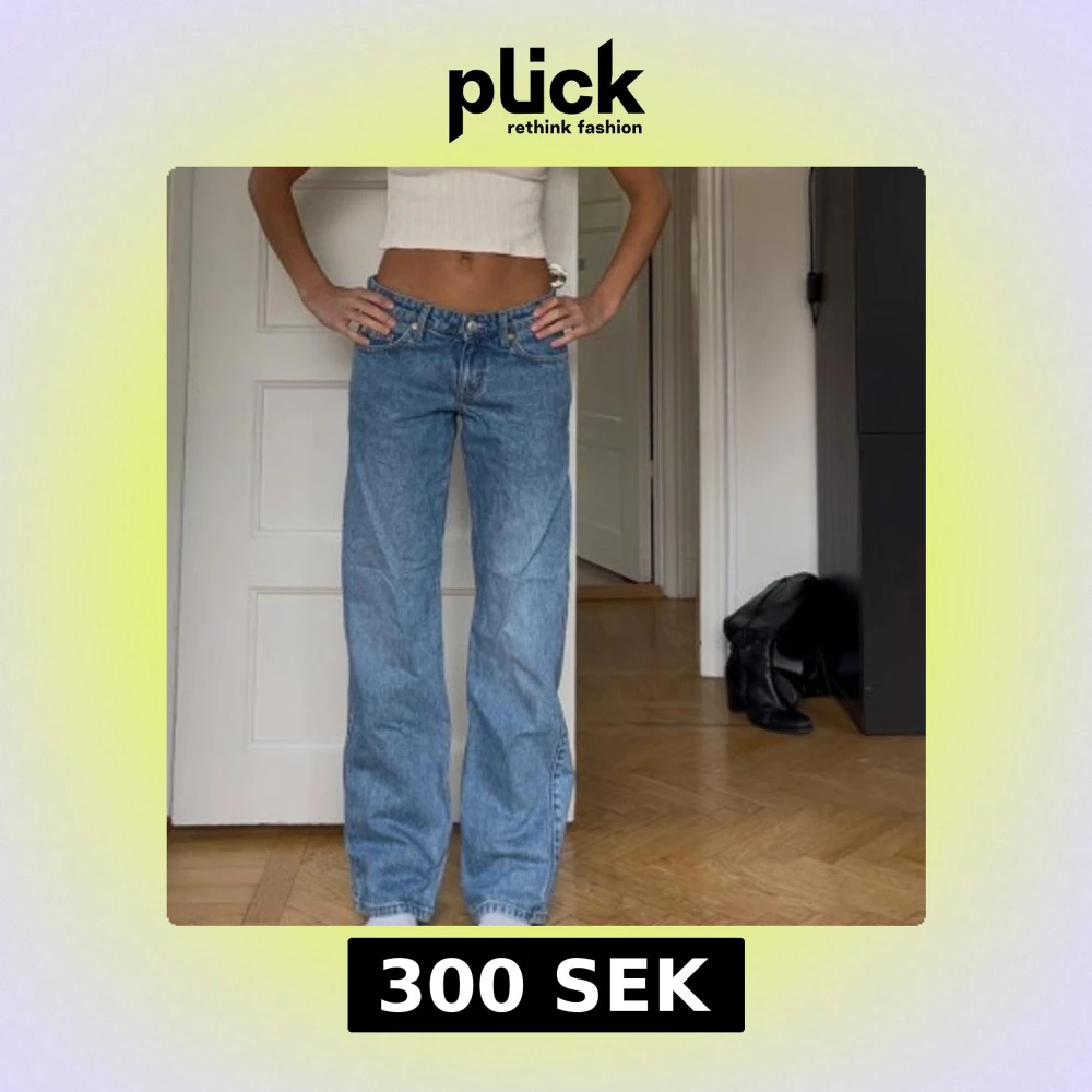Säljer ett par klassiska blå jeans från Weekday med rak passform och normal/låg midja. Mycket bra skick! W26 L32 modell ”Arrow”