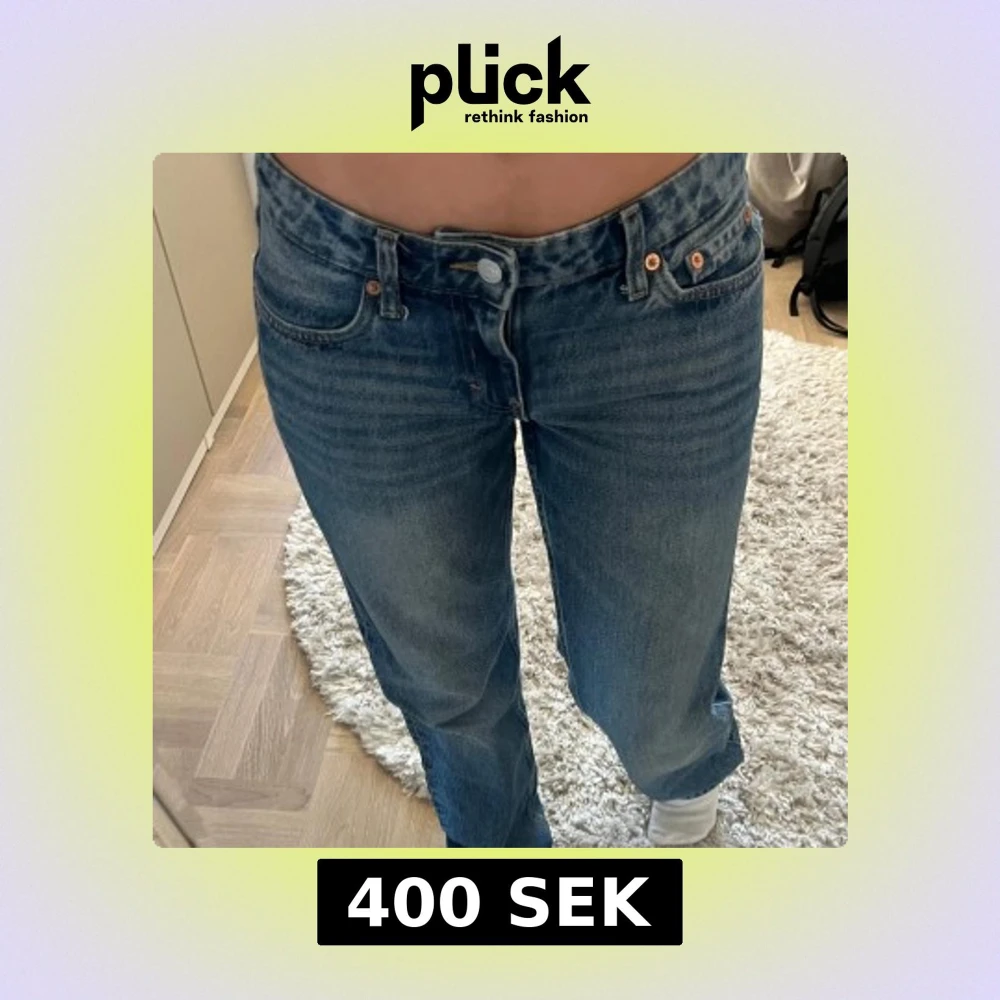 Säljer ett par klassiska blå jeans från weekday med raka ben och hög midja. Lite mer info o mått: Total length / 103 Bredd / 40 Inseam / 81 Leg opening / 21 Crotch area / 21