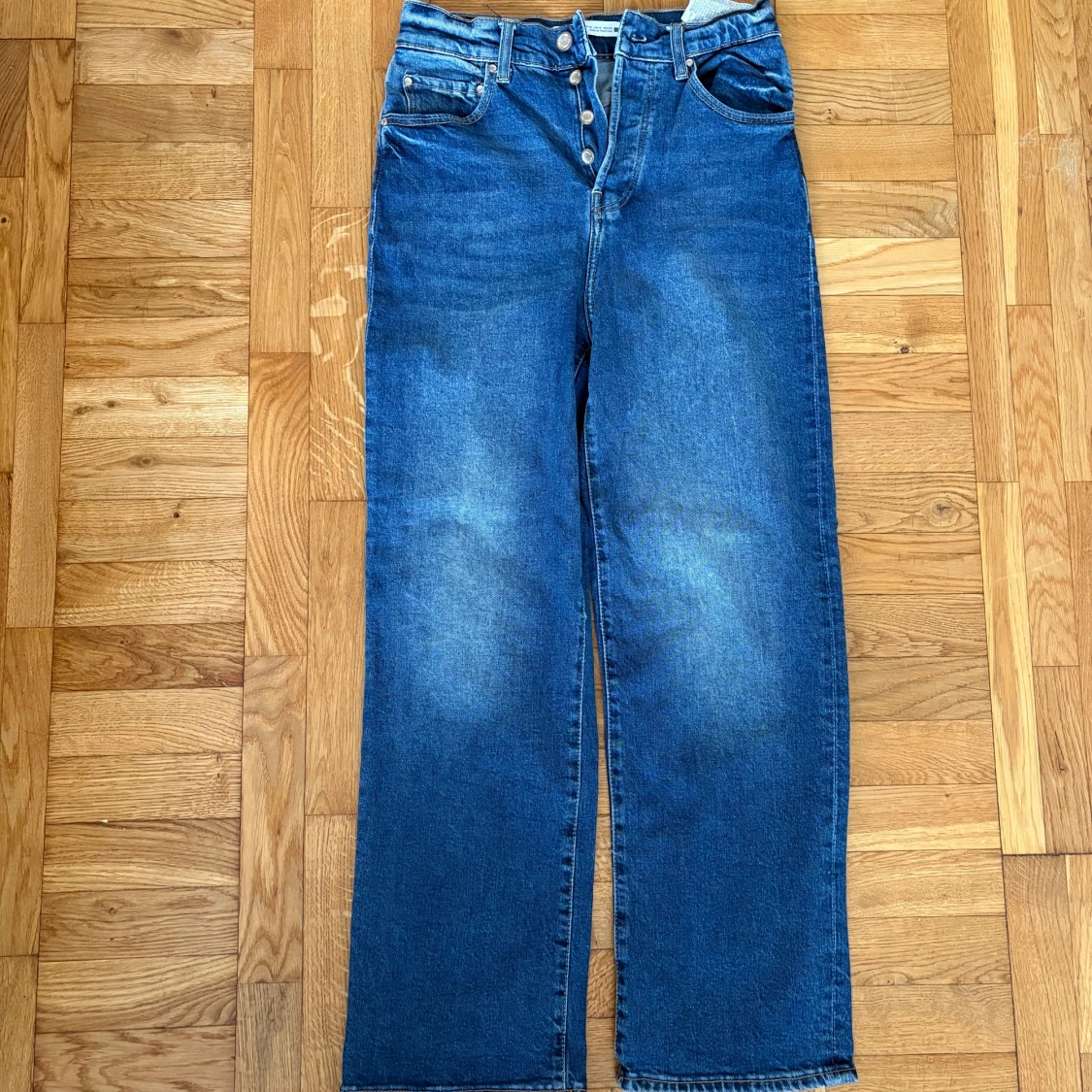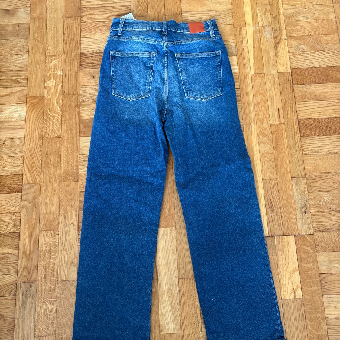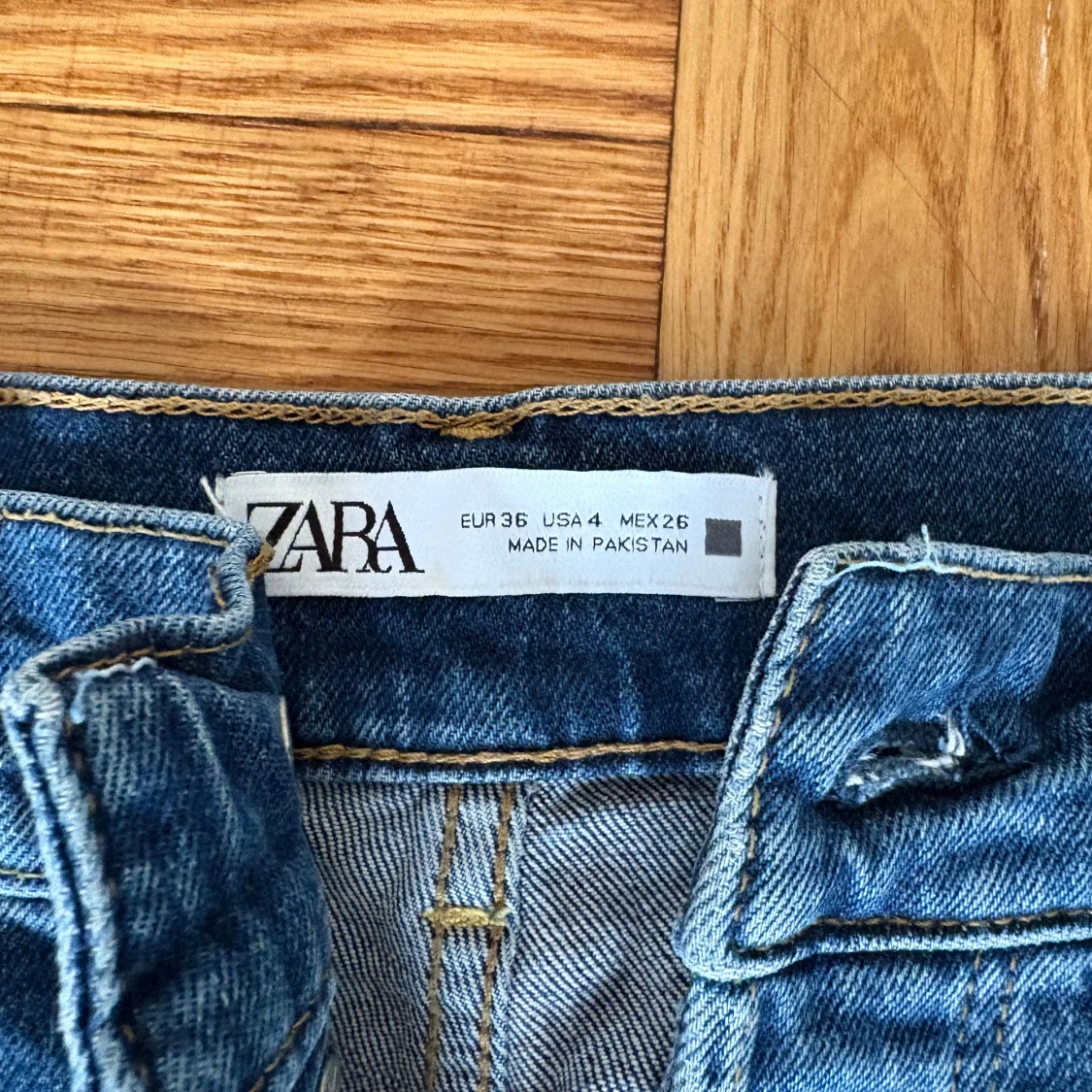 Snygga blå jeans från Zara i rak modell med hög midja och knäppning framtill. Jeansen har klassisk femficksdesign och är tillverkade i ett robust denimtyg. Perfekta för dig som gillar en avslappnad och trendig look.