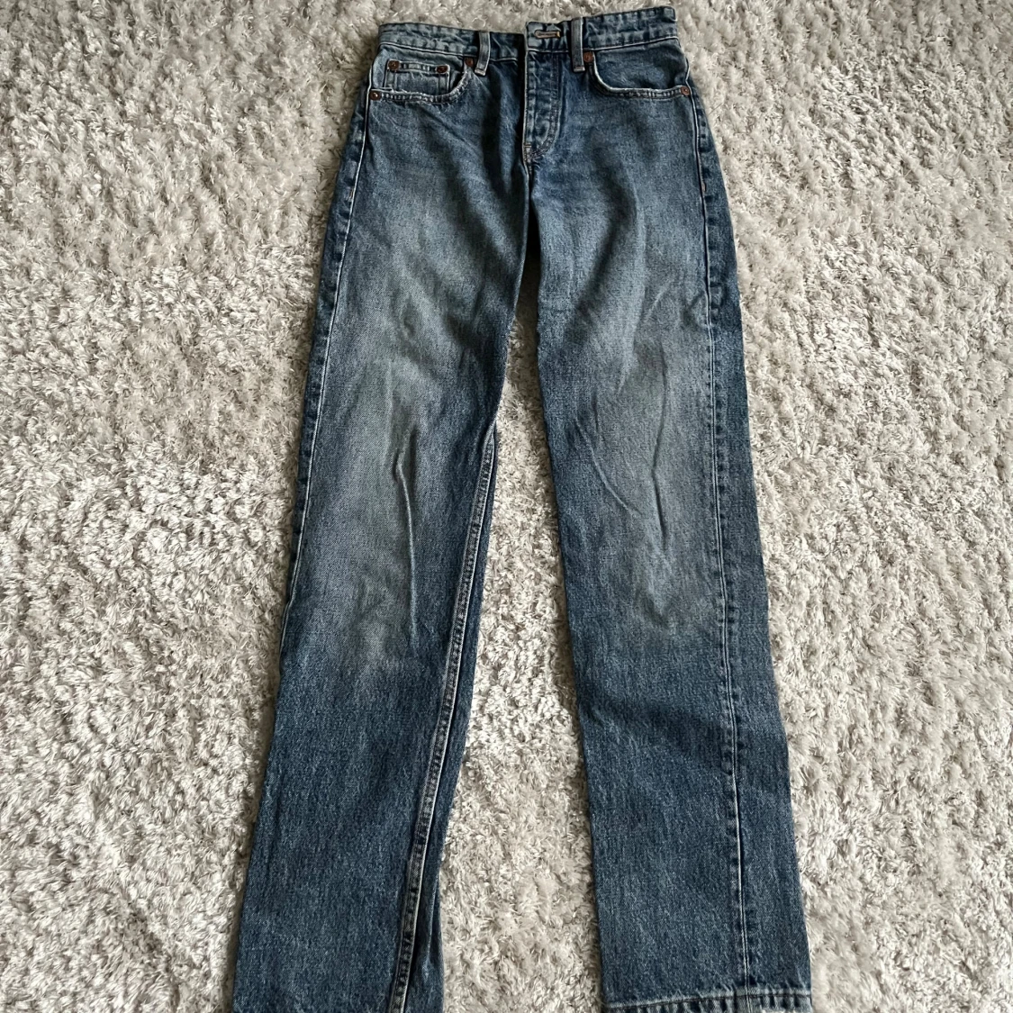 Klassiska blå jeans från Zara med raka ben och normal passform. Jeansen har fem fickor, bälteshällor och stängs med dragkedja och knapp. Tillverkade i slitstarkt denimtyg som ger en tidlös look.