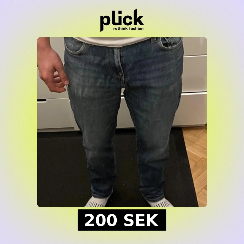 Säljer ett par blå jeans med rak passform och klassisk femficksdesign. Jeansen har normal midja och är tillverkade i slitstarkt denimtyg. Perfekta för dig som gillar en tidlös och enkel stil.