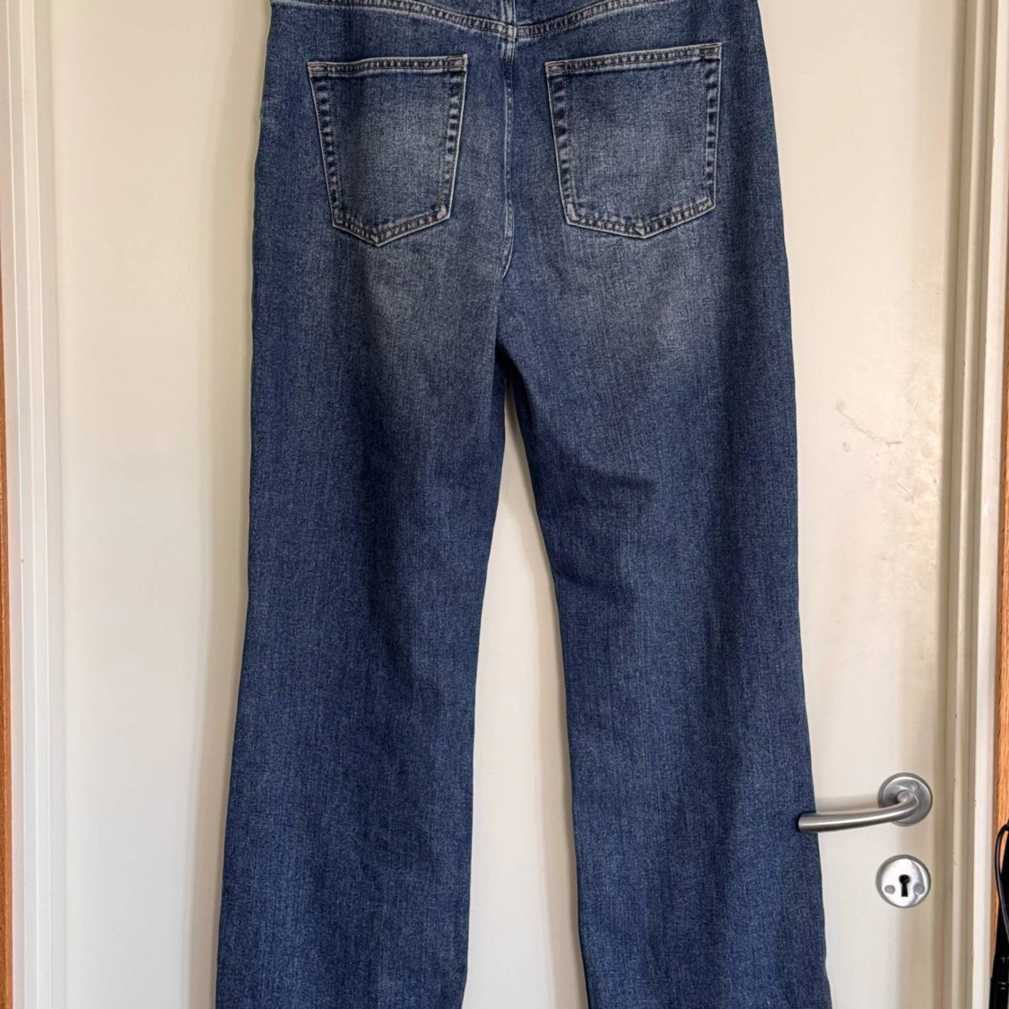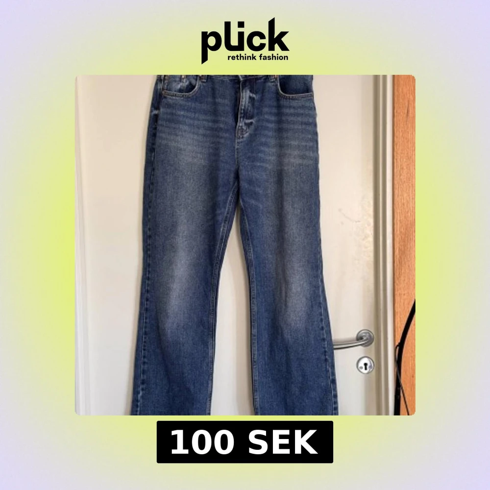 Säljer ett par klassiska blå jeans med raka ben och hög midja. Jeansen har en snygg tvätt med lätt slitning framtill och bakfickor utan detaljer. Perfekta för en chill och stilren look. Only. Längd 32. Large. Mkt fina. Sparsamt använda.