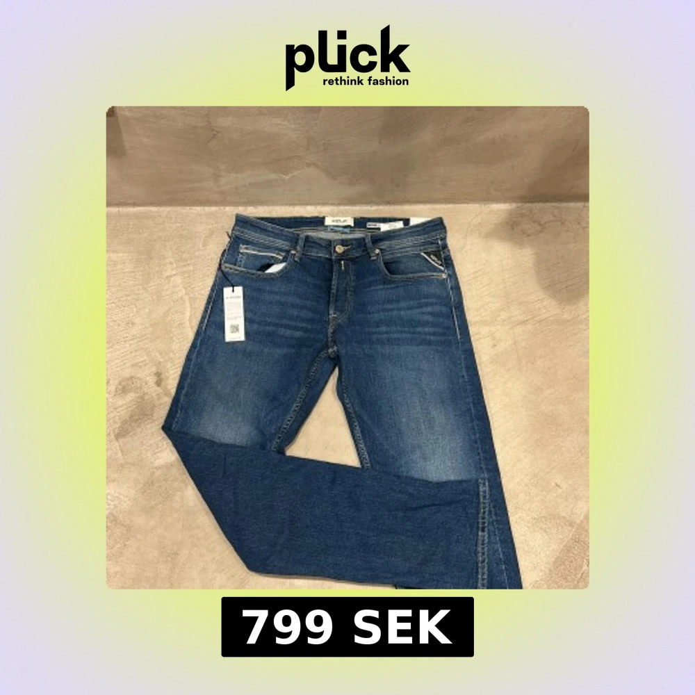 Snygga blå jeans från Replay, modell 573 Eco Plus. Klassisk femficksdesign med gul kontrastsöm och Replay-logga på bakfickan. Jeansen har en rak passform och är tillverkade i mjukt denimtyg av bomull. Perfekta för dig som gillar stilrena och hållbara jeans.
