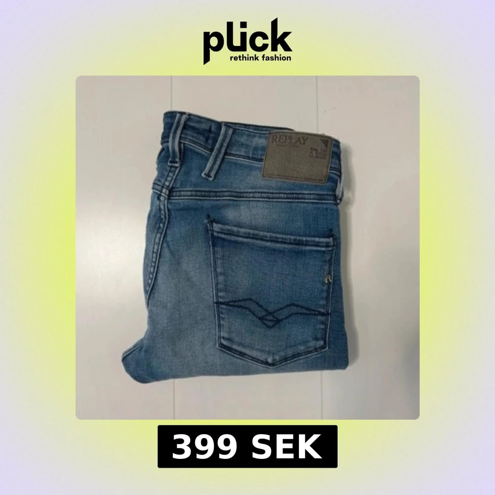 Snygga blå Replay Anbass jeans med klassisk femficksdesign och diskreta slitningar. Jeansen har normal passform, raka ben och tydliga sömmar på bakfickorna. Märkespatch i skinn baktill i midjan och detaljerad logga på myntfickan. Perfekta för en avslappnad stil.