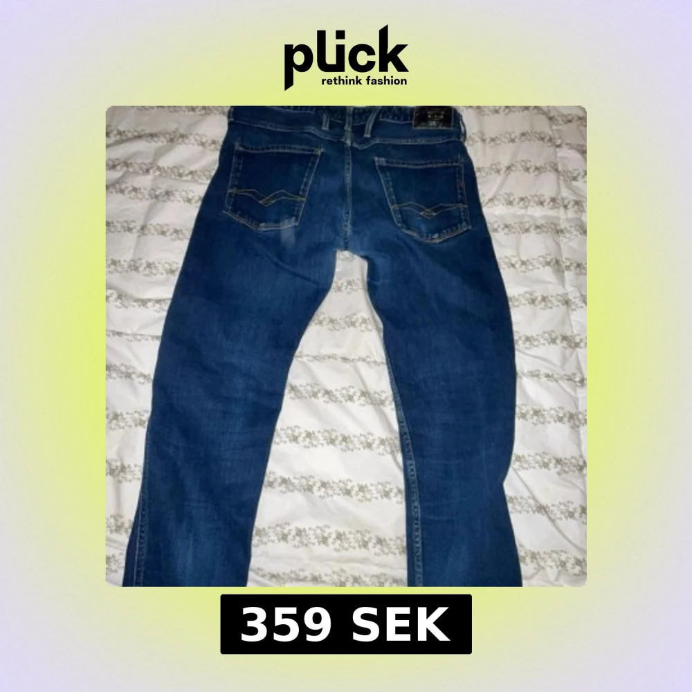 Säljer ett par klassiska blå jeans från Replay, modell Anbass. Jeansen har raka ben, snygga bakfickor med dekorativa sömmar och detaljer i kontrastfärg. Tillverkade i slitstarkt denim med normal passform och medelhög midja.