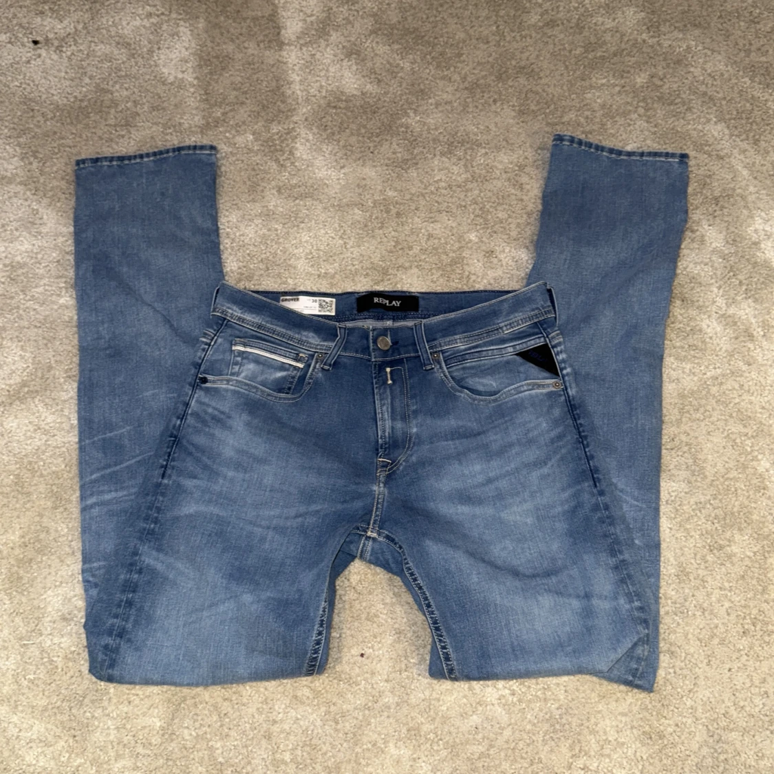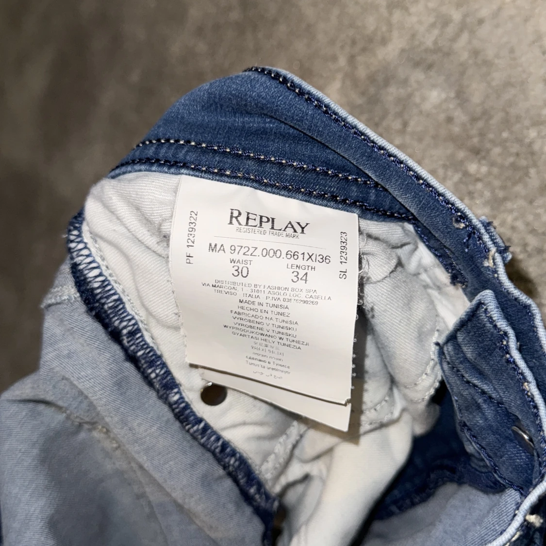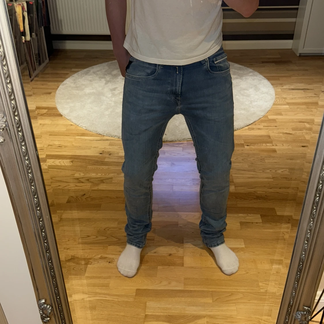 Säljer ett par snygga Replay Anbass jeans i färgen ljusblå i storleken Waist 30 och length 34. Modellen på bilden är ca 170 cm lång och jeansen är lite för långa på honom. Nypris ca 1000kr mitt pris 599kr!!! Vid funderingar är det bara att höra av sig!