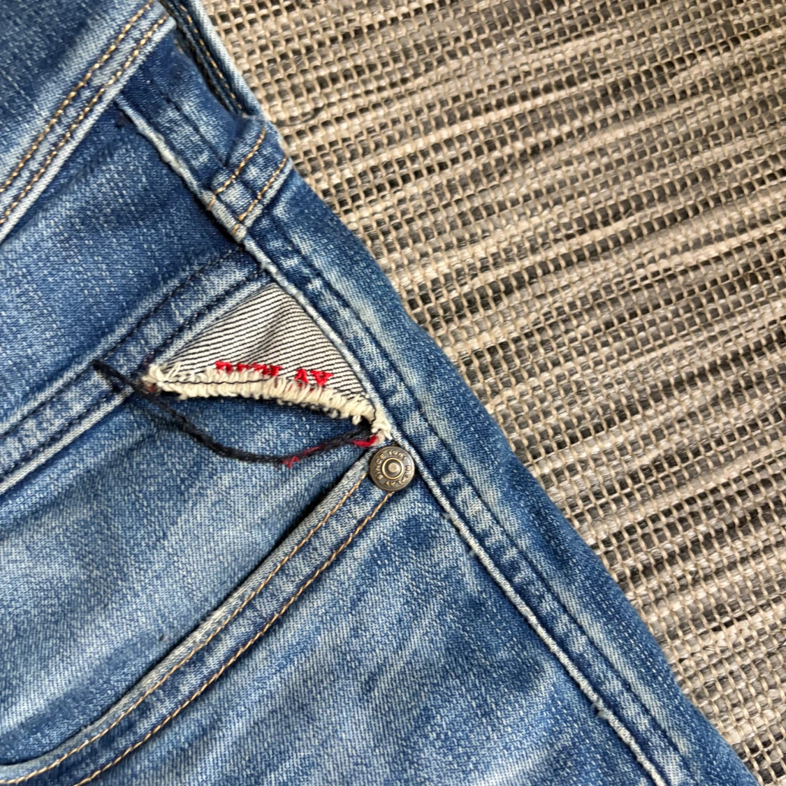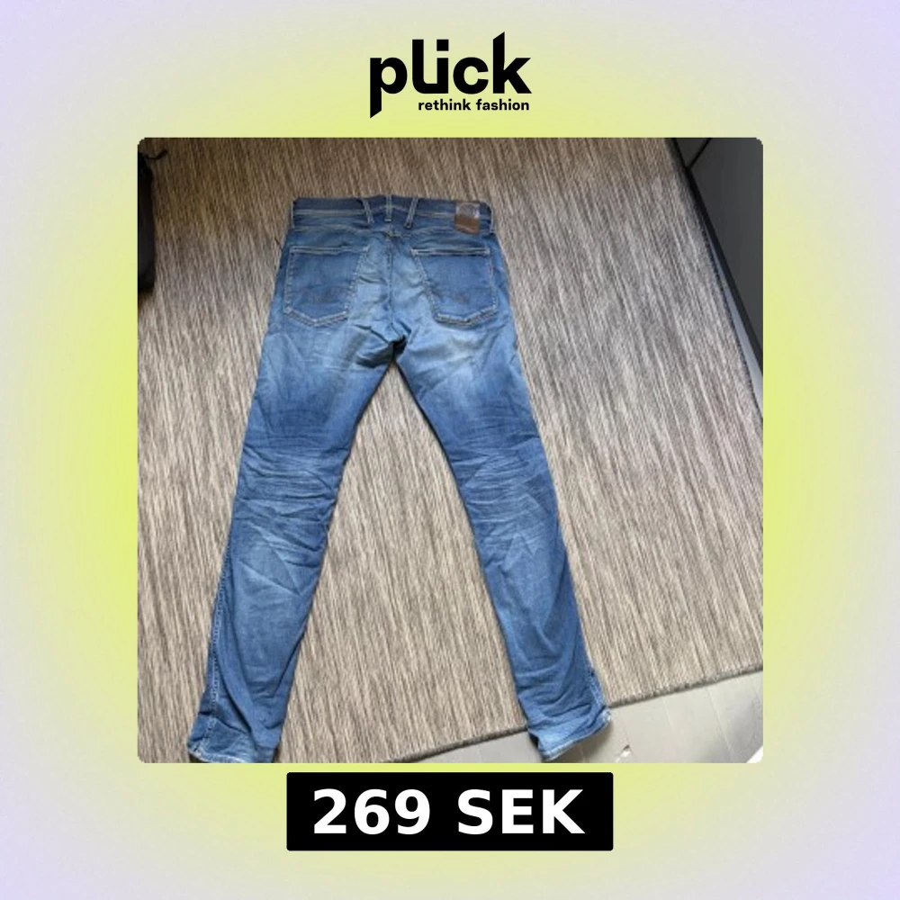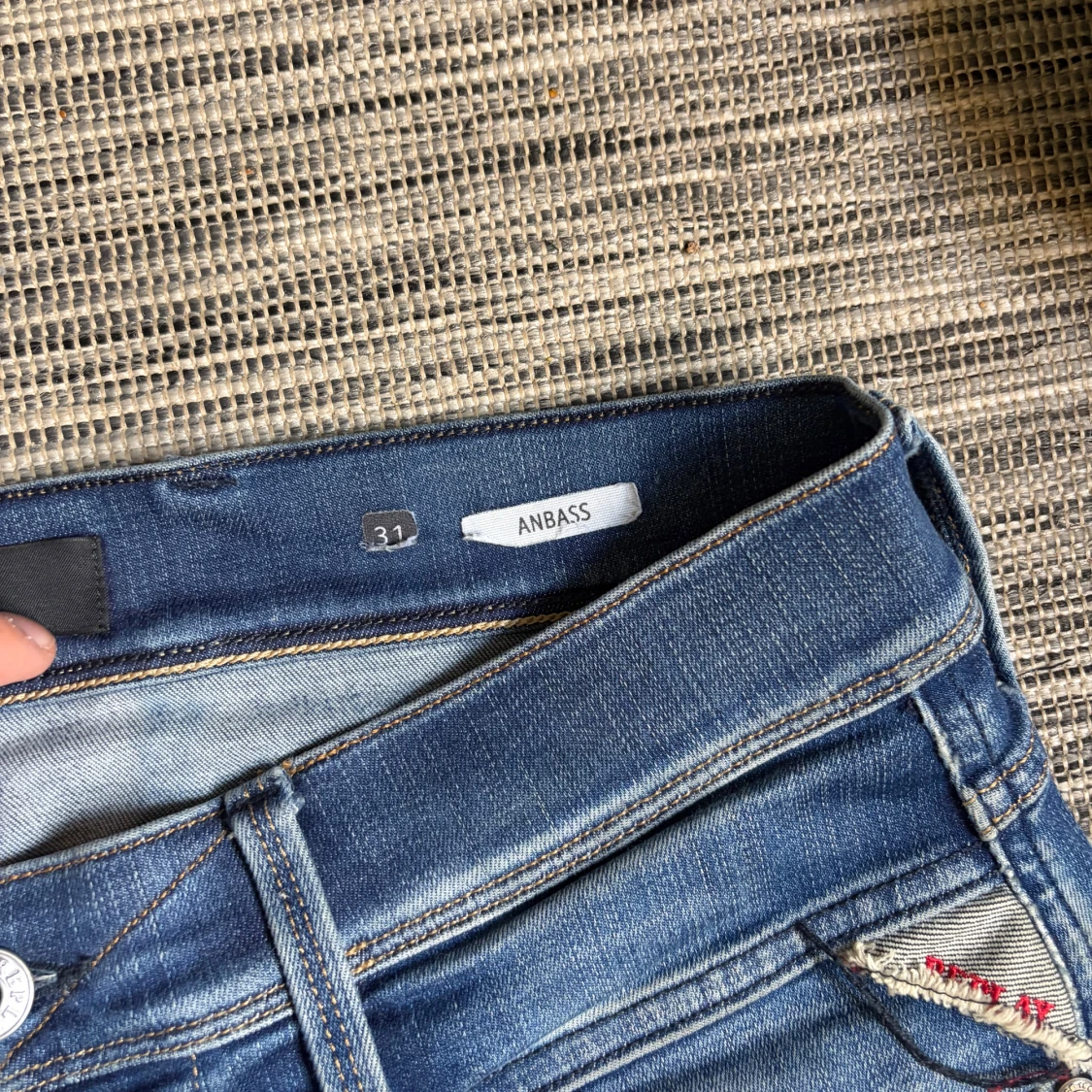 Säljer ett par blå Replay Anbass jeans i klassisk tvätt. Jeansen har fem fickor, snygga slitningar och detaljer med kontrastsömmar. Märkespatch i läder baktill och diskret Replay-brodyr vid fickan. Perfekt passform och stilren look. 3 effekter som syns på bilden. Syns men inte tydligt i användning. Jeansen behöver kärlek! Kan diskutera pris.