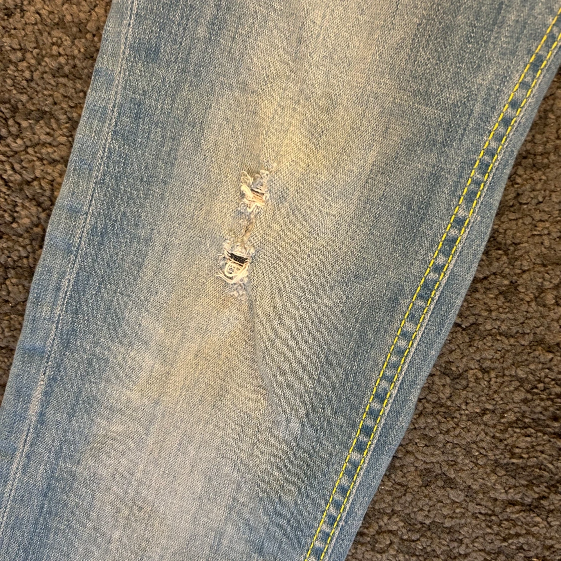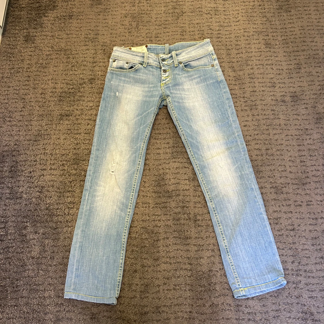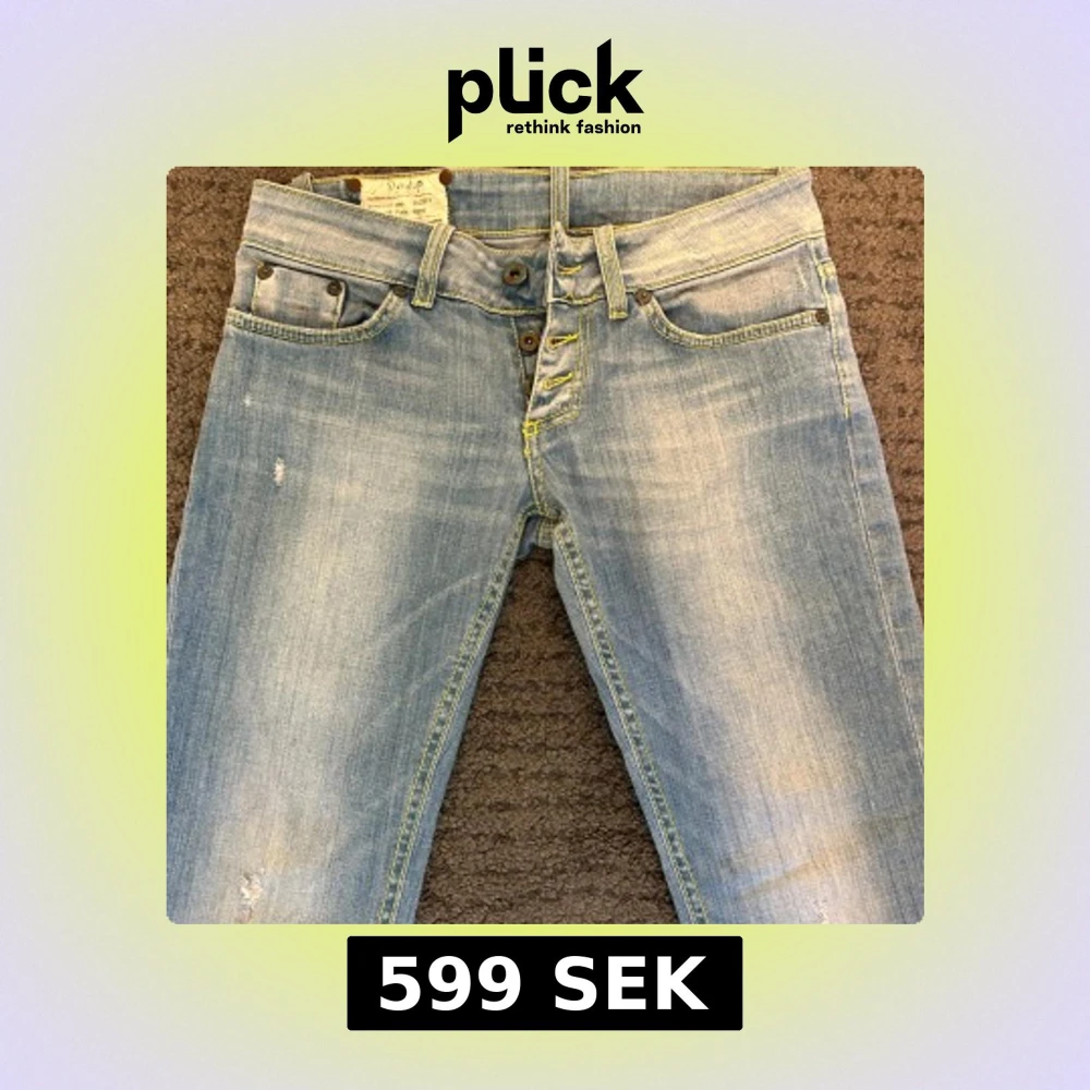 Säljer nu ett par riktigt feta Dondup jeans. Storlek W29, längden är 88,5 cm. Jeansen är förkortade men inget som märks vid användning. Märket där bak där det står Dondup är inte synligt, men Inget man tänker på. Om du har några fler funderingar så är det bara att fråga på! ❇️