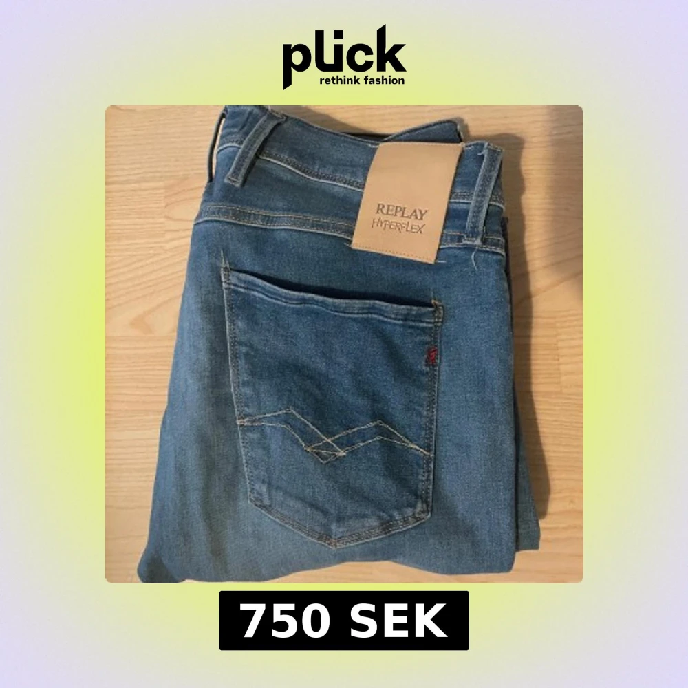 Säljer ett par skit feta blå Replay Hyperflex Anbass jeans i slim fit. Använda ett fåtal gånger och är så bra som nya!