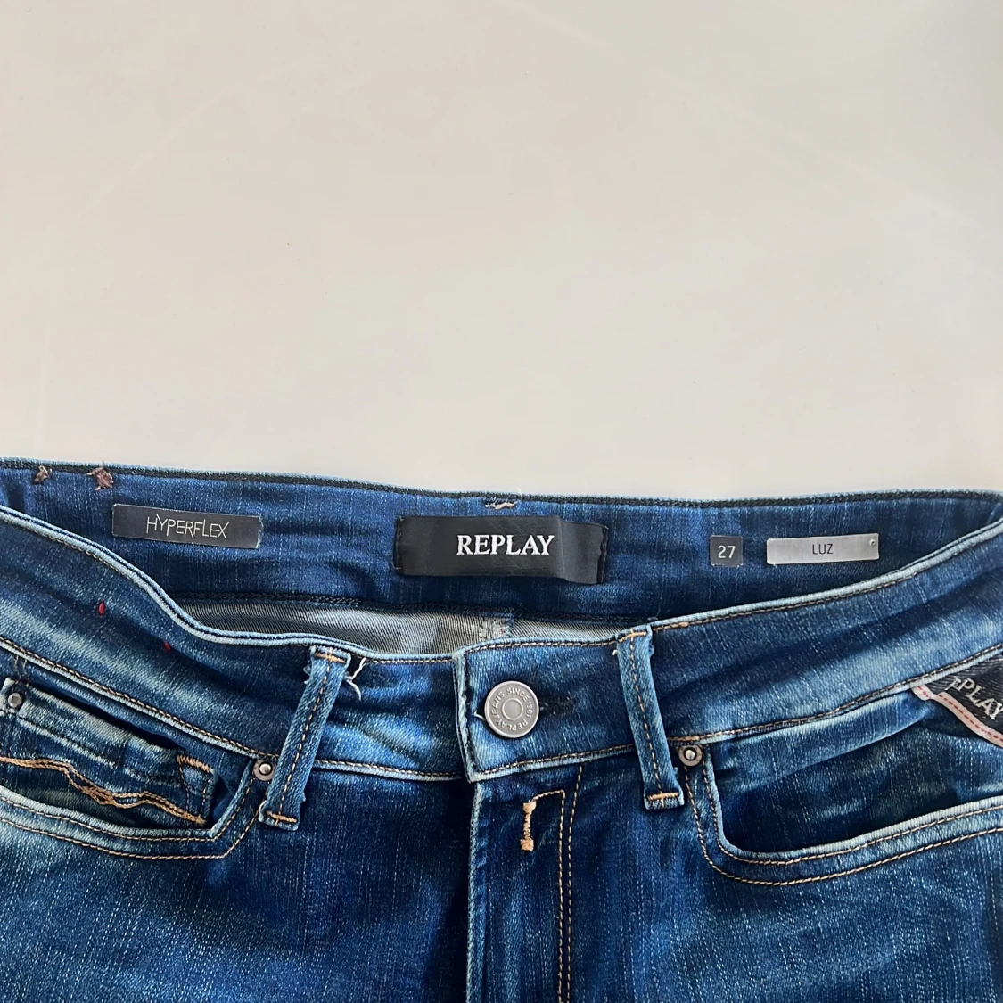Säljer ett par blå Replay Hyperflex jeans i modellen Luz. Jeansen har klassisk femficksdesign, normal passform och snygga slitningar framtill. Stretchigt material för extra komfort. Nypris: 1700 och mitt pris: 470 kr. Perfekta till vardags och passar till det mesta. Skriv bara vid minsta fråga, priset kan diskuteras!