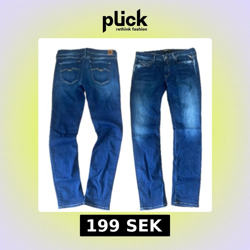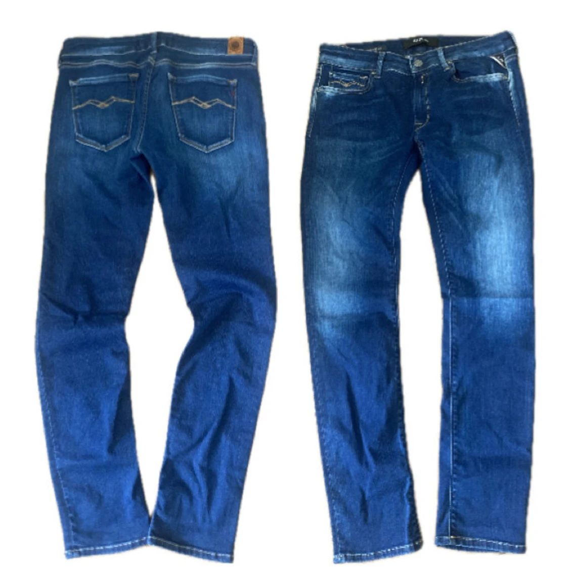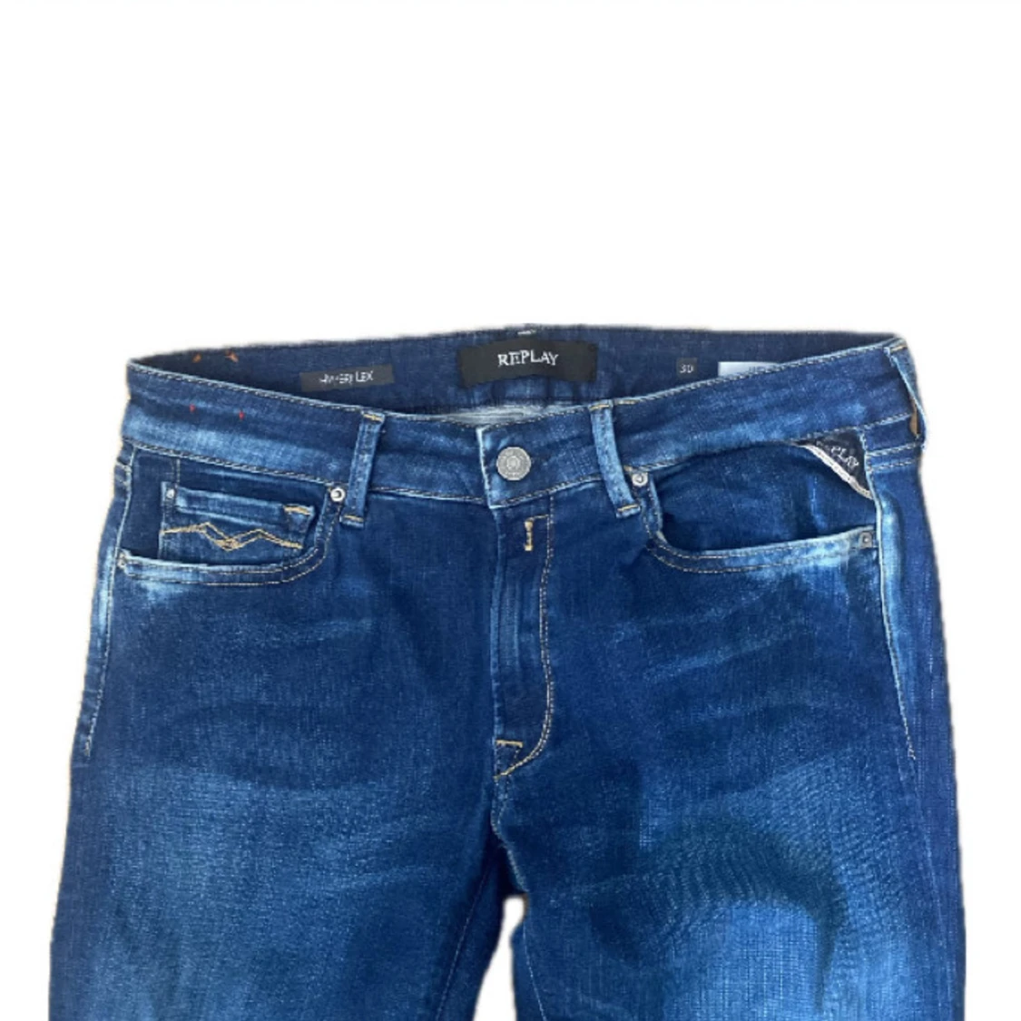 Snygga blå Replay Hyperflex jeans med klassisk femficksdesign och coola slitningar. Jeansen har raka ben och normal passform, med tydliga kontrastsömmar och Replay-logga på bakfickan. Perfekta för dig som gillar en avslappnad men stilren look.