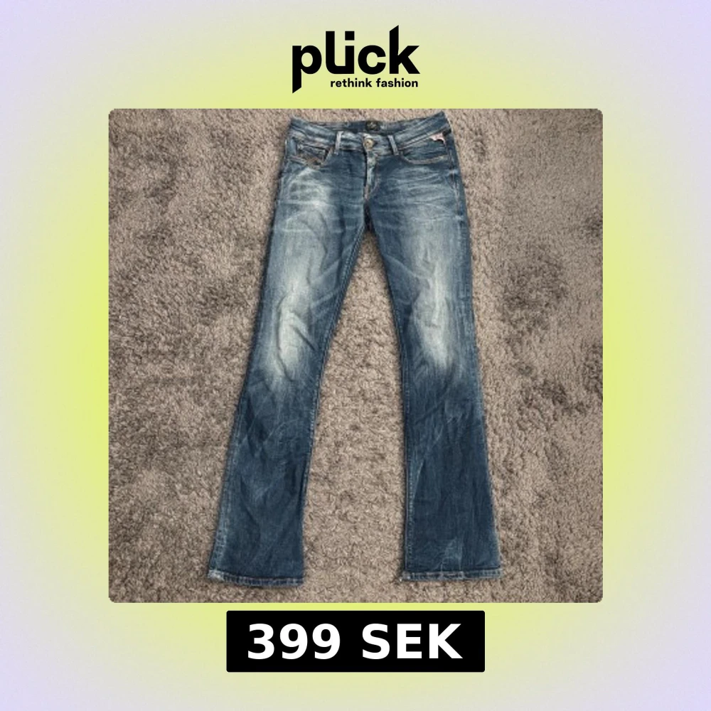 Snygga blåa lågmidjade jeans från Replay med tvättat look, storlek W28 L32. pris kan diskuteras☺️