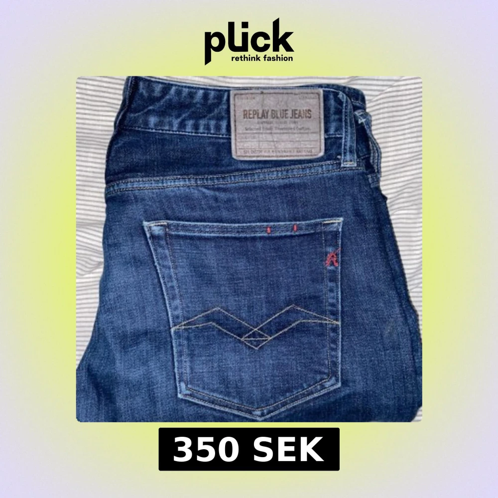 Snygga blå jeans från Replay med klassisk femficksdesign och kontrastsömmar på bakfickorna. Byxorna har normal passform och är tillverkade i slitstarkt denim. Märkespatch baktill och detaljer i rött vid fickorna ger extra stilpoäng. Nypris är 1000kr. Mitt pris är 350kr. Pris kan diskuteras