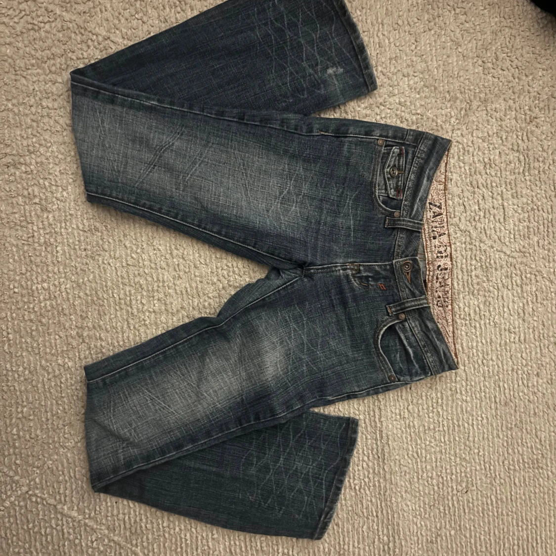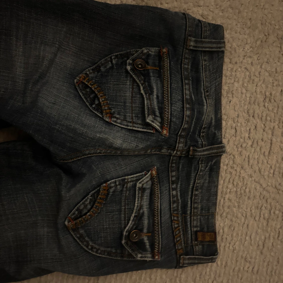 Säljer mina snygga jeans från A2Vintage för dom är för små. Jeansen har coola detaljer på fickorna. Och dom är väldigt lowrise och bootcut. Perfekt för någon med storlek xs/xxs/34 (jag är 173cm på bilden)