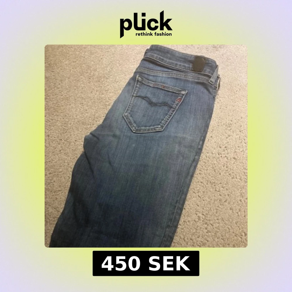 Säljer ett par blå jeans från Replay med snygg slitning på ena benet. Klassisk femficksmodell med dragkedjegylf och Replay-logga på bakfickan. Jeansen har en rak passform och är tillverkade i mjukt denimtyg.