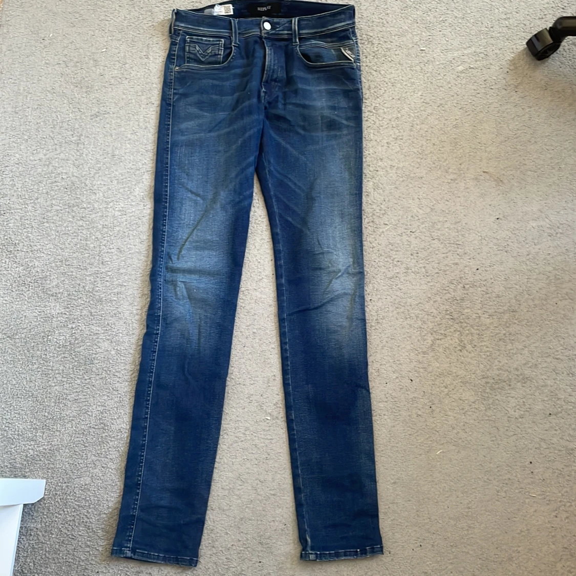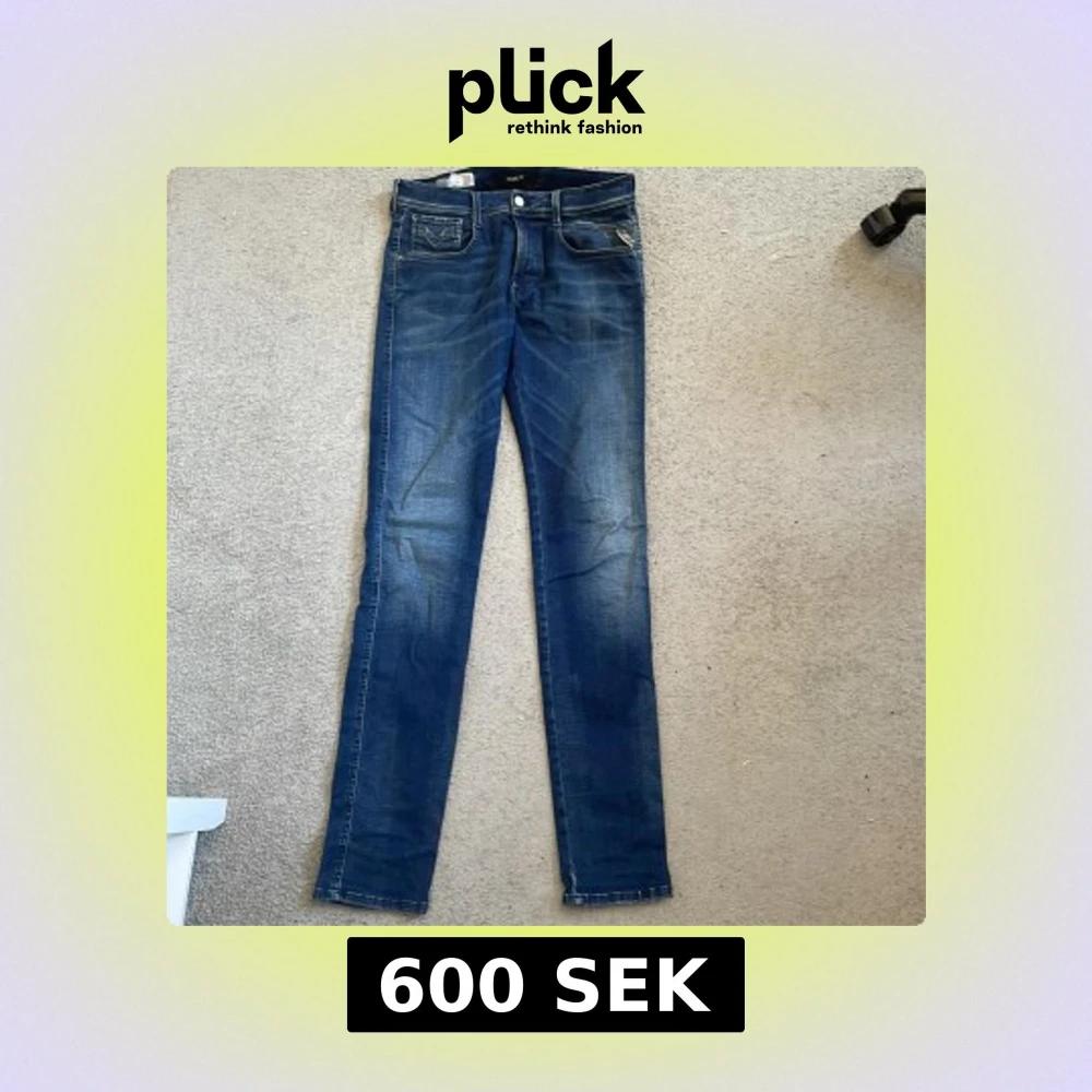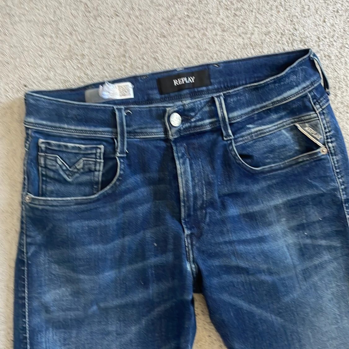 Säljer ett par snygga blå jeans från Replay modell anbass. Jeansen har klassisk femficksdesign och en fin tvätt. De är tillverkade i stretchigt denim för extra komfort och har låg midja.